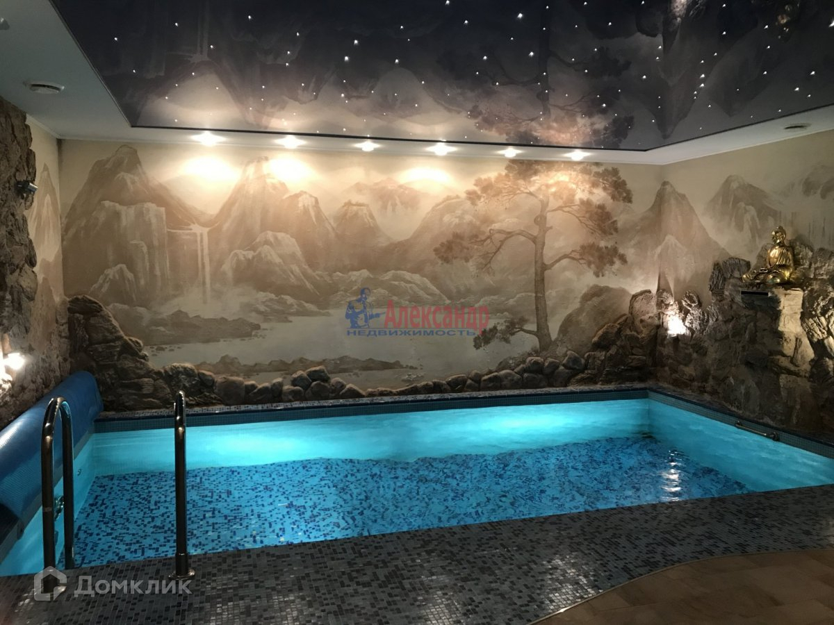 В основном доме: просторная кухня-гостиная-столовая 83 кв.м., 5 больших спален (24+23+16+17+17кв.м.), детская игровая (21кв.м) и музыкальная (36кв.м.) комнаты, бильярдная (37), бассейн с сауной (56 кв.м), кинотеатр, спортивный зал,  несколько с/у, гараж на 2 а/м.