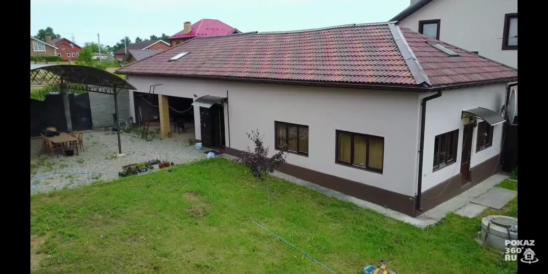 Кроме этого, на участке рядом с домом расположен гостевой дом площадью 150 кв.м.со встроенным гаражом для 2-х машин и навесом. Невдалеке от дома, на участке, построена уютная беседка с бетонным основанием. Вокруг дома засеян газон, установлен забор и большие въездные ворота.