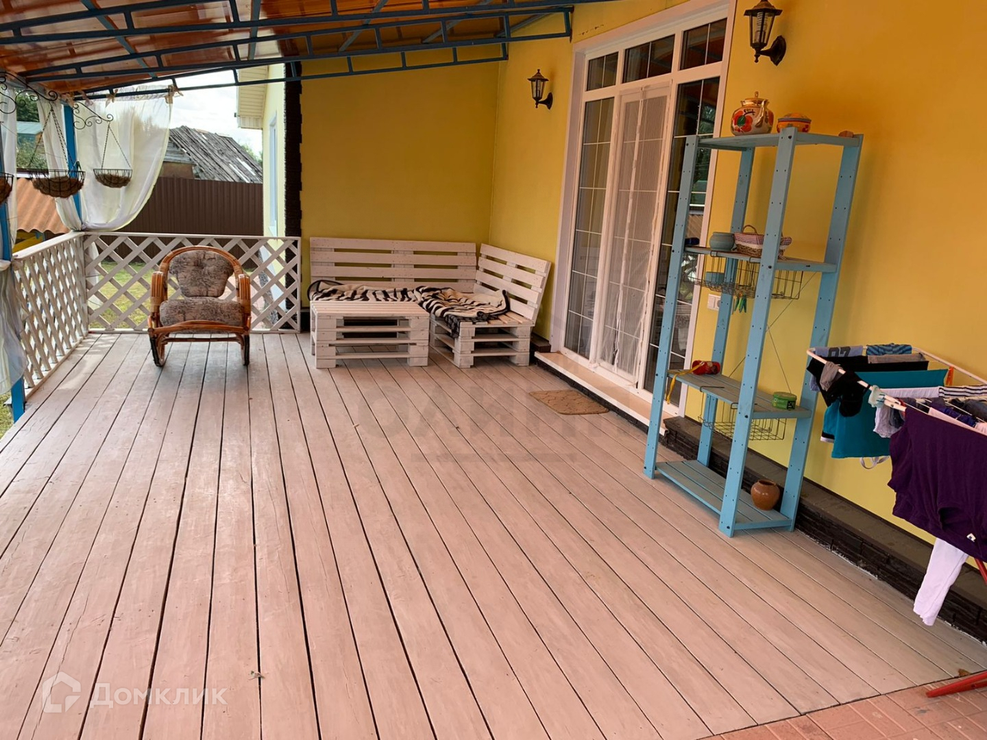 Гостиная с выходом на крытую террасу с видом на двор.
