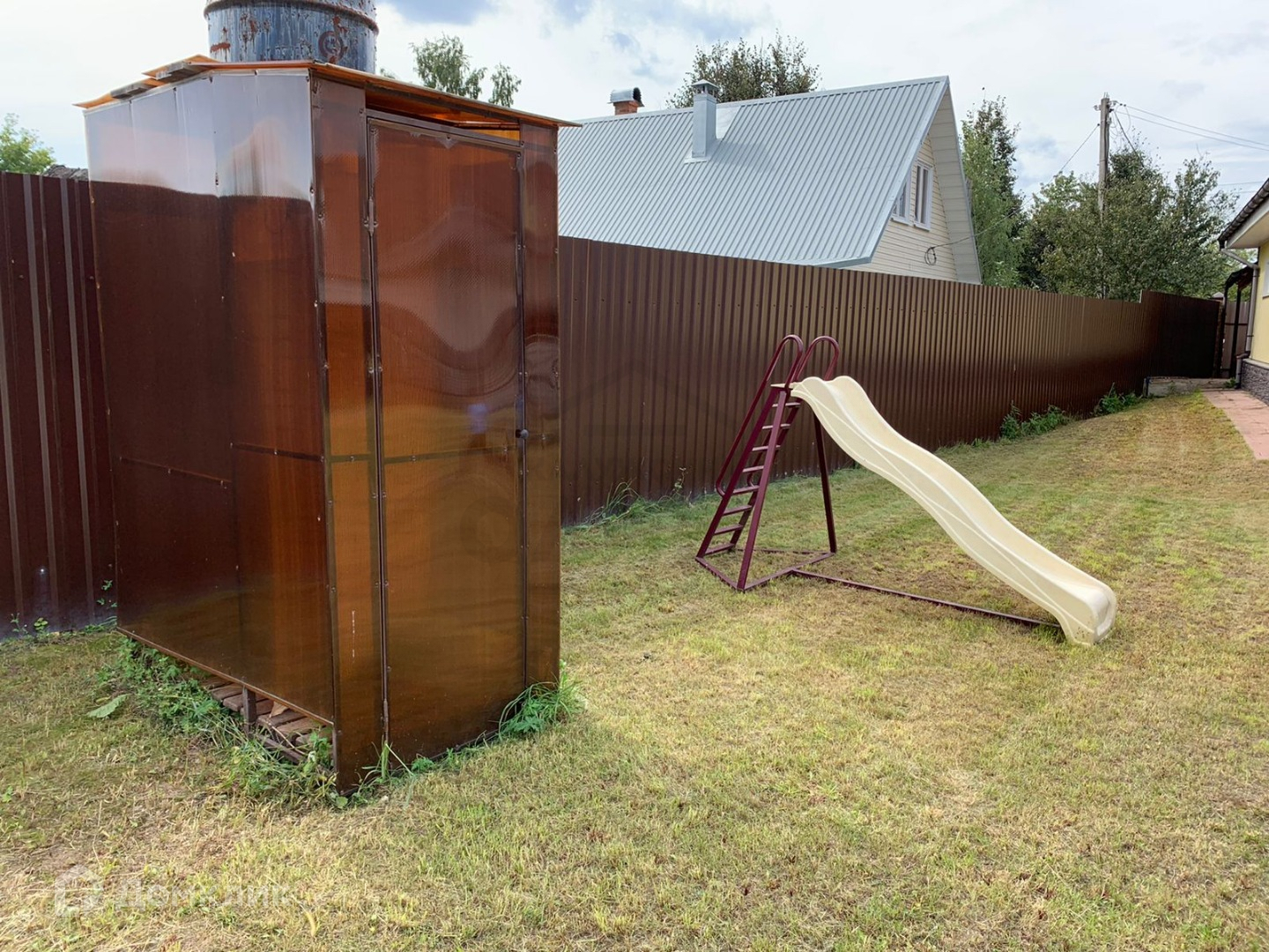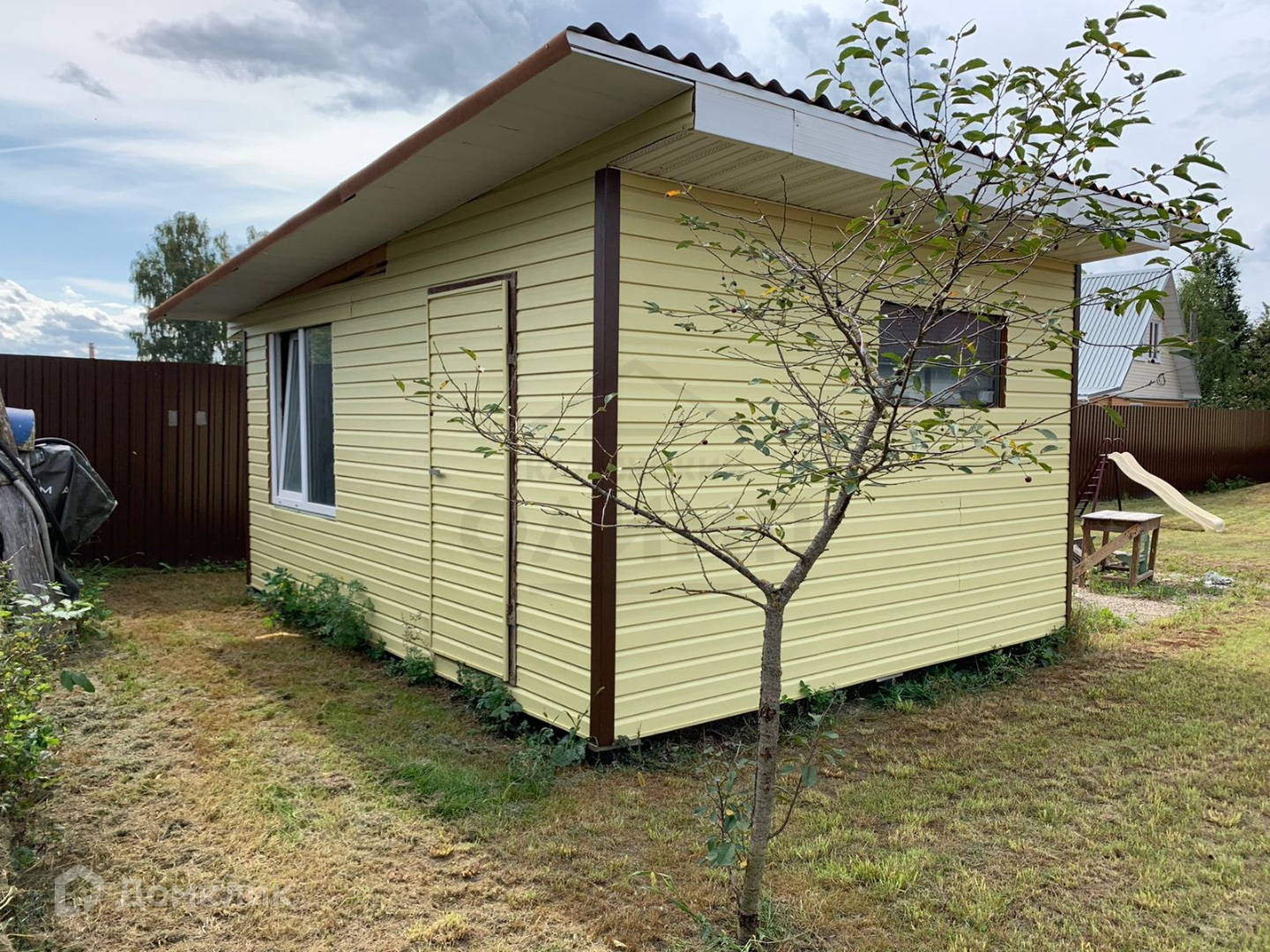 На участке посажены деревья: вишня и яблоня. Также построен сарай 4*5 м2, имеется подготовленное место для постройки бани либо бассейна, 5*6 м2. Летний душ, детская горка и песочница.