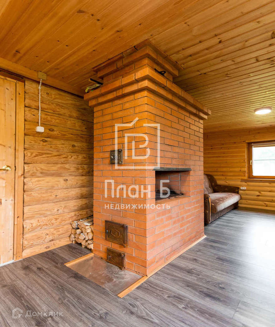 В просторной комнате-спальне есть печь с хорошей тягой, что дает возможность протопить дом без включения дополнительного отопления.