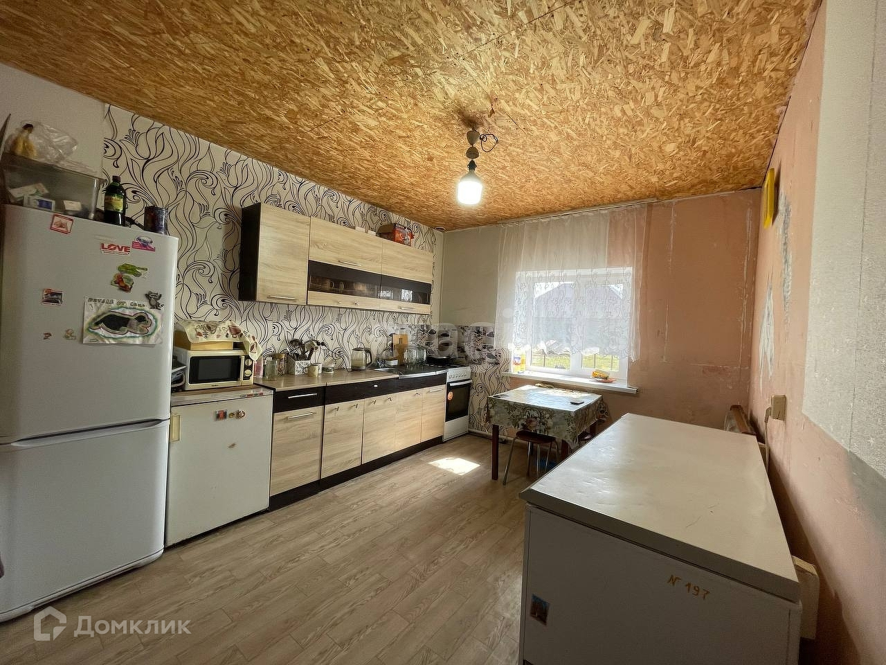 В доме две светлые комнаты, большая просторная кухня, санузел совмещен, имеется небольшое подполье (где можно хранить заготовки, овощи и др.). В доме улучшенная черновая отделка. Окна пластиковые. Отопление электро и печное, водоснабжение центральное (имеется еще скважина).