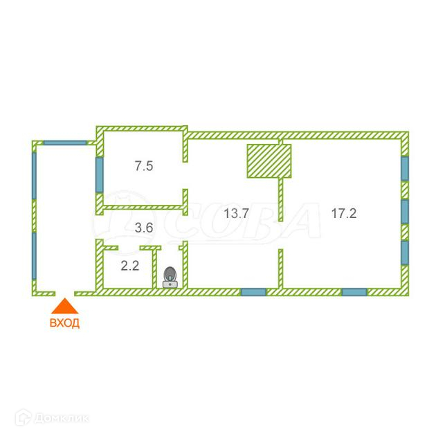Общая площадь 45.3 м2