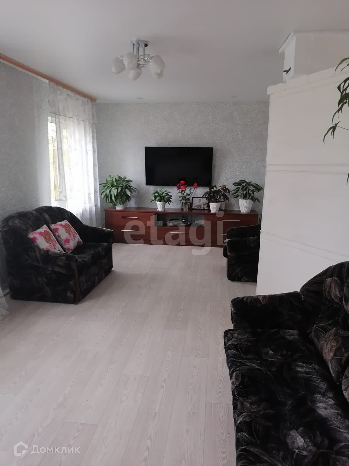 В доме кухня-гостиная 16кв.м.,2 уютные комнаты электроотапление и печное, санузел раздельный, окна пластик,на полу линолиум.