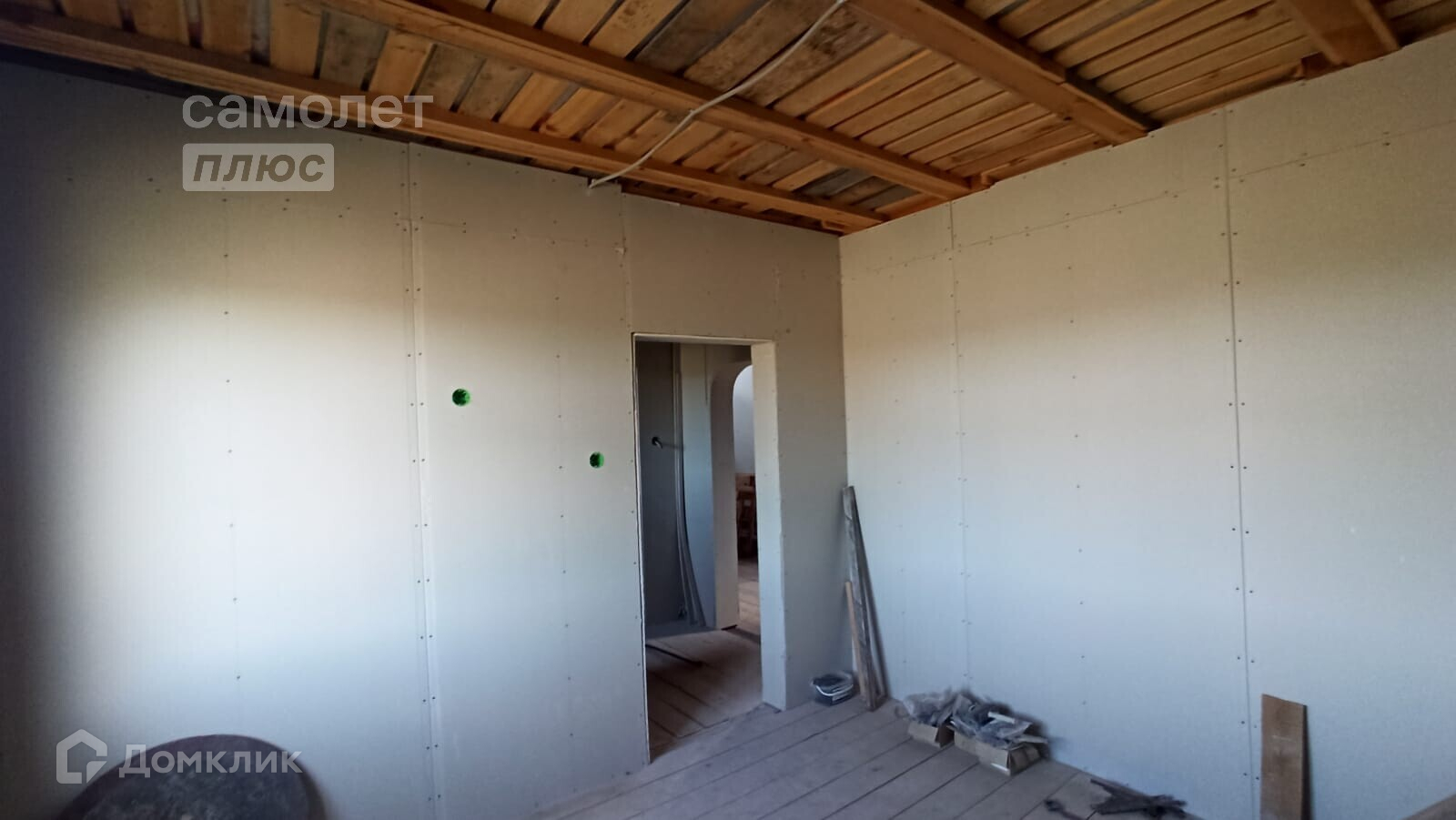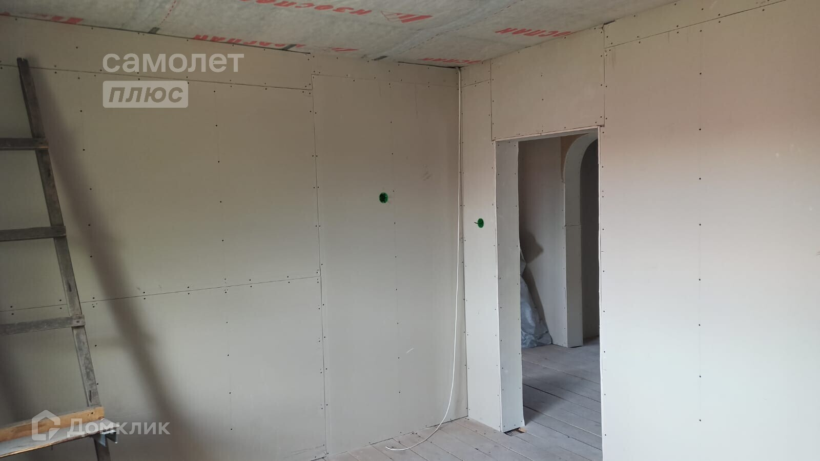 - По всему дому разведена электропроводка, но она пока не подключена к электрическому щитку, автоматы не выведены, однако к дому введено электричество.