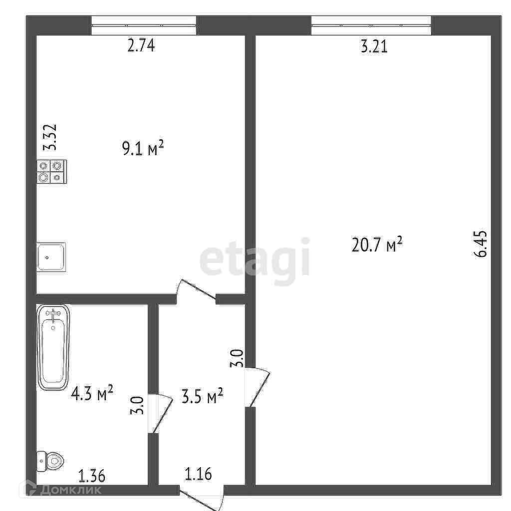 Общая площадь 37.6 м2