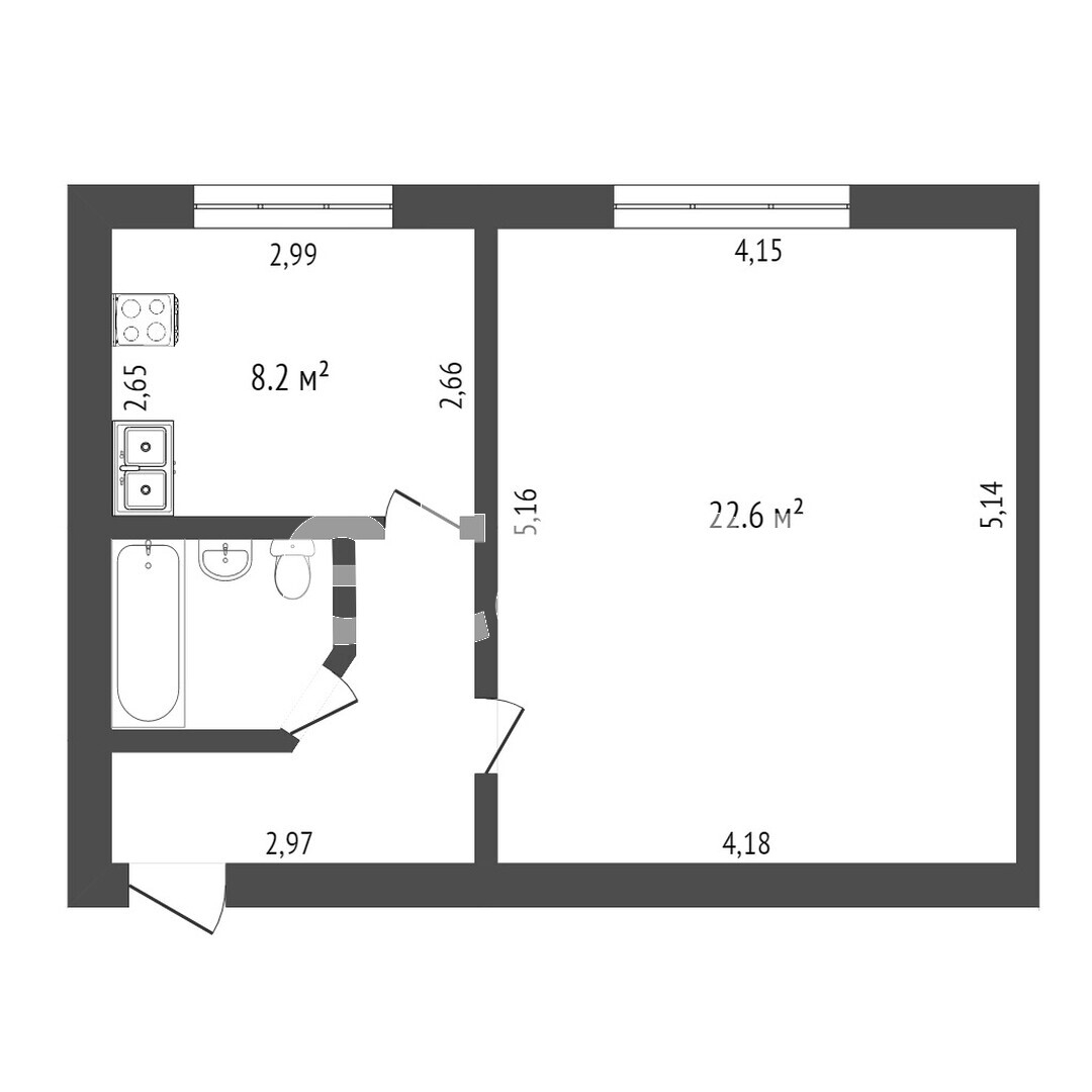 В квартире оставляют плиту, водонагреватель, холодильник. В подвале есть место под кладовку.