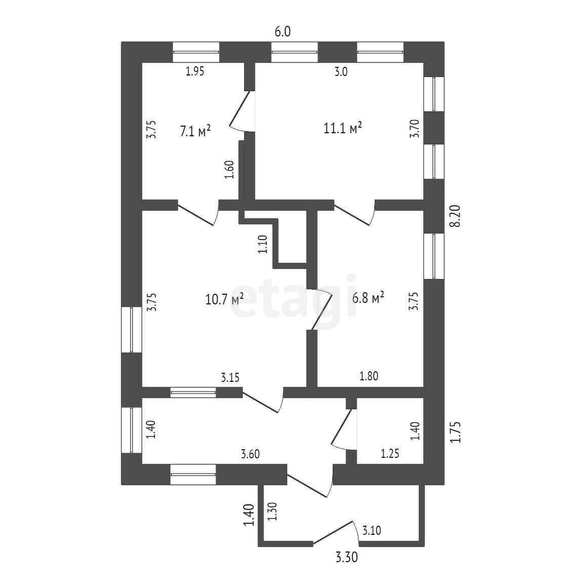 Общая площадь 42.7 м2