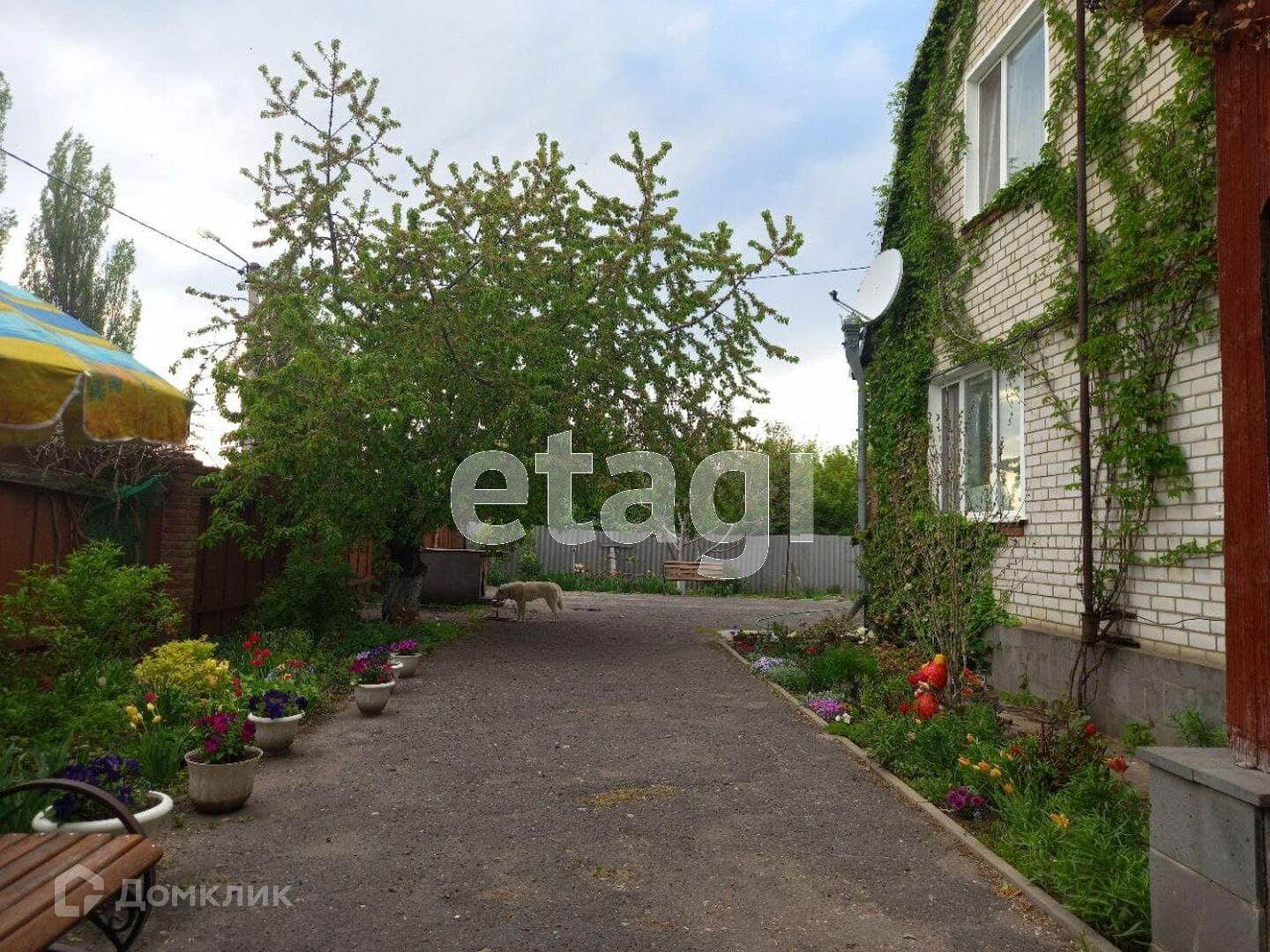 Дом стоит на участке в 15 соток, двор асфальтирован, разработан небольшой огород. Имеется парковочное место для автомобиля. Подъезд к дому асфальтирован.