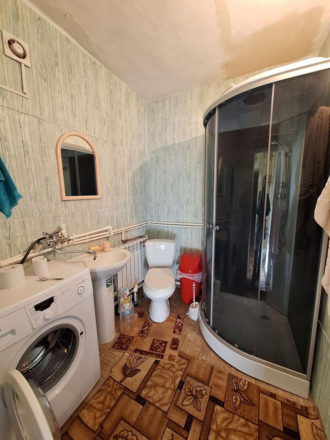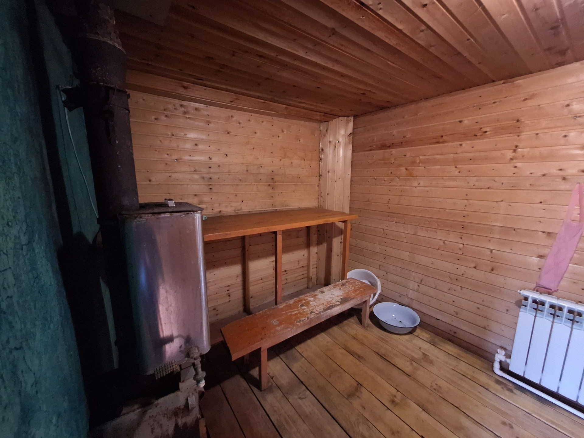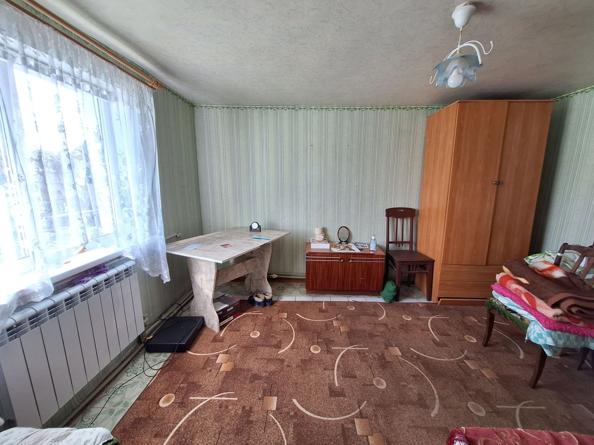 В нем расположены: две спальни, зал,гостиная, совмещенный санузел, котельная. В доме установлен новый котел, водонагреватель. Залиты полы, покрытие линолеум. На участке расположен флигель, в нем установлена кухня и есть уютная комната.