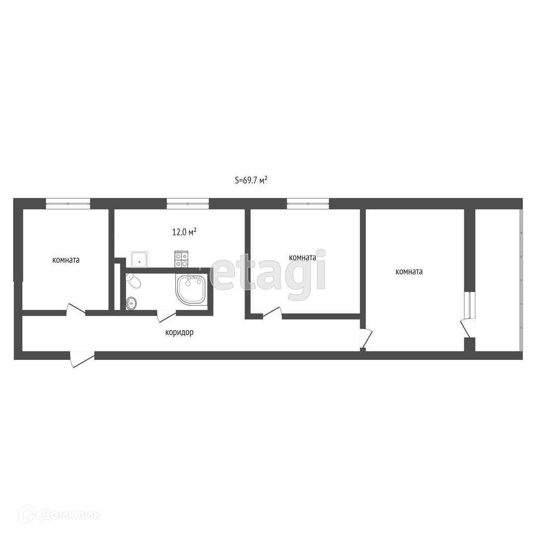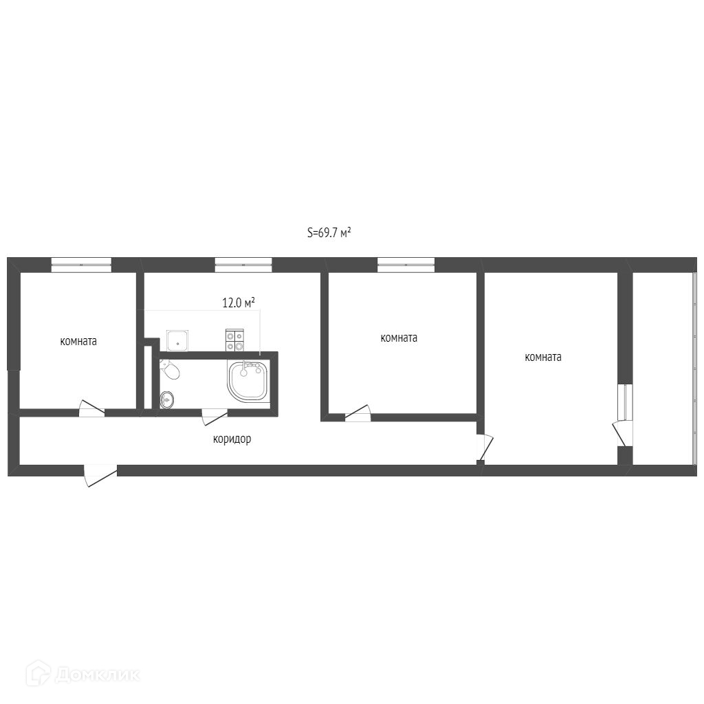 Общая площадь 69.7 м2