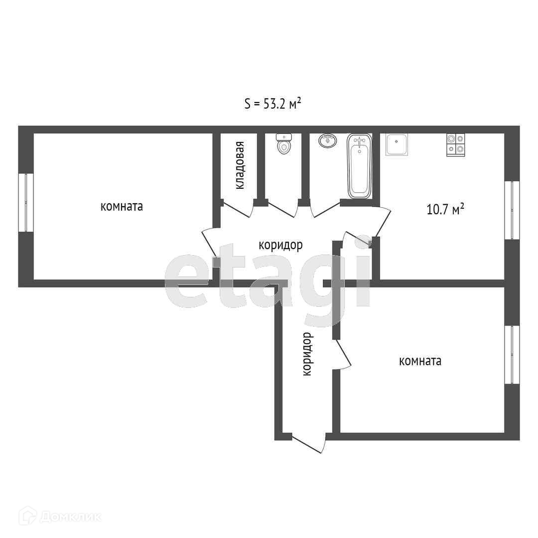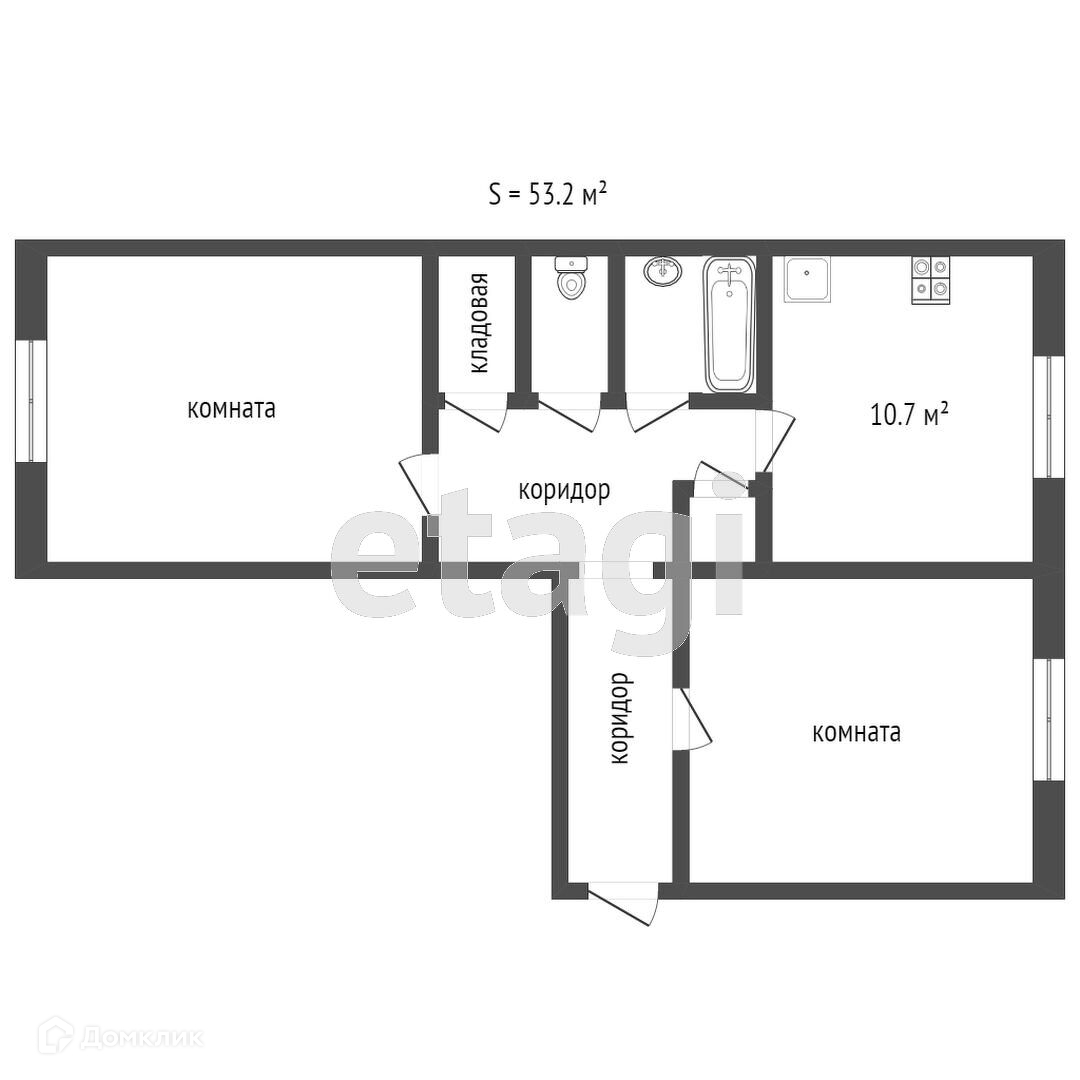 Общая площадь 53.2 м2