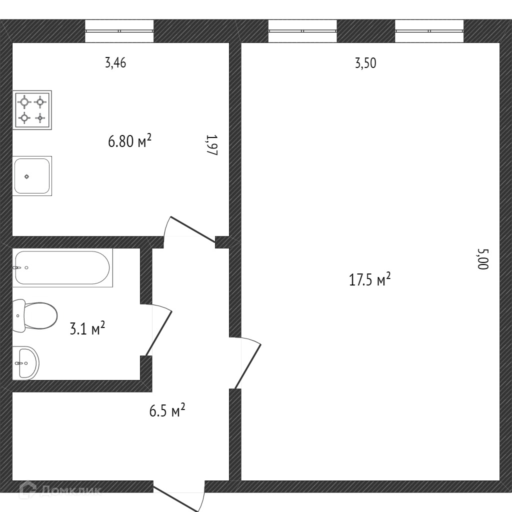 Общая площадь 33.1 м2