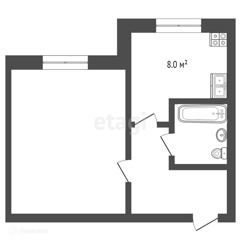 Общая площадь 33.3 м2