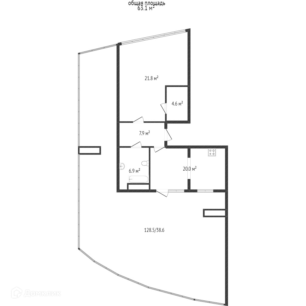Общая площадь 74.6 м2