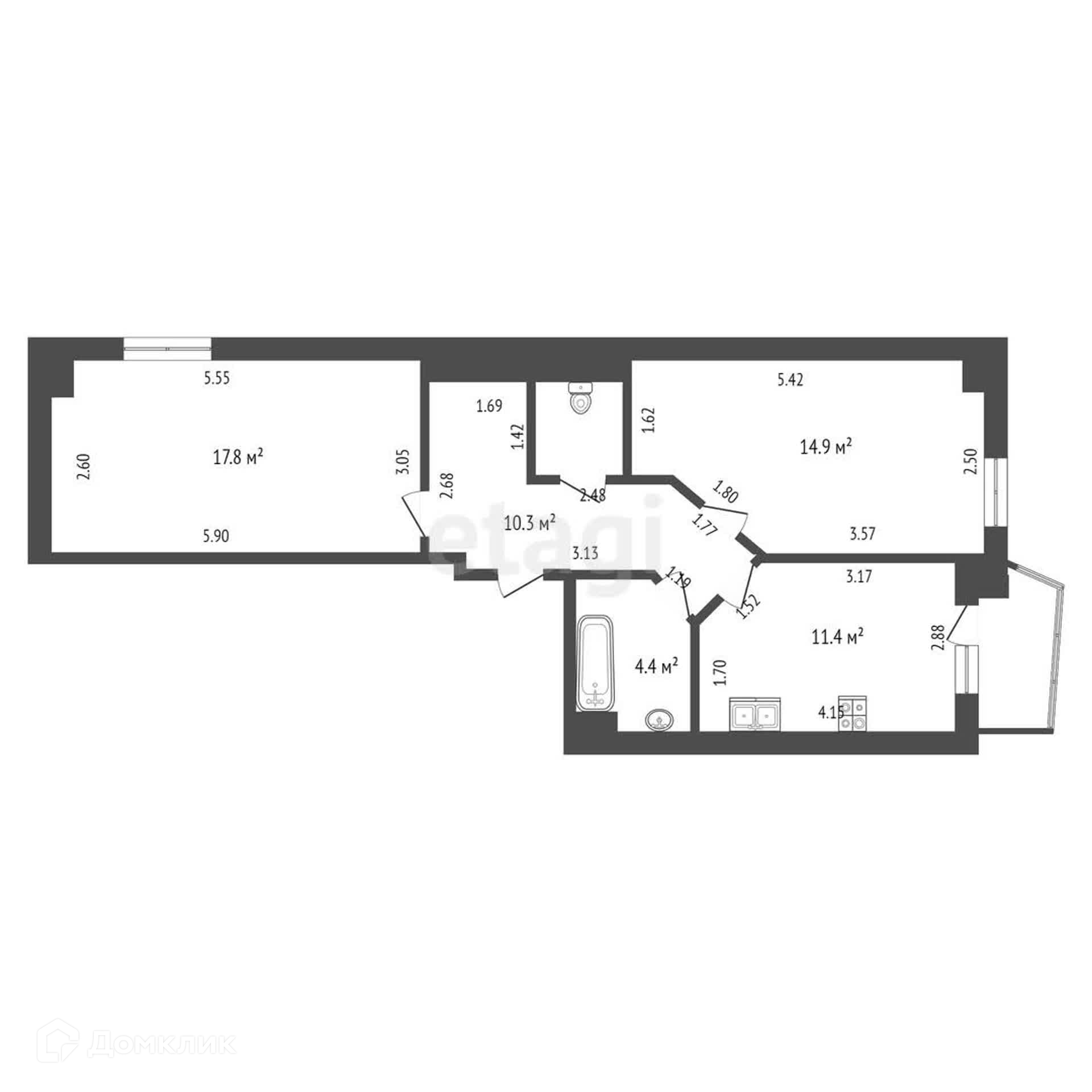 Общая площадь 60.7 м2