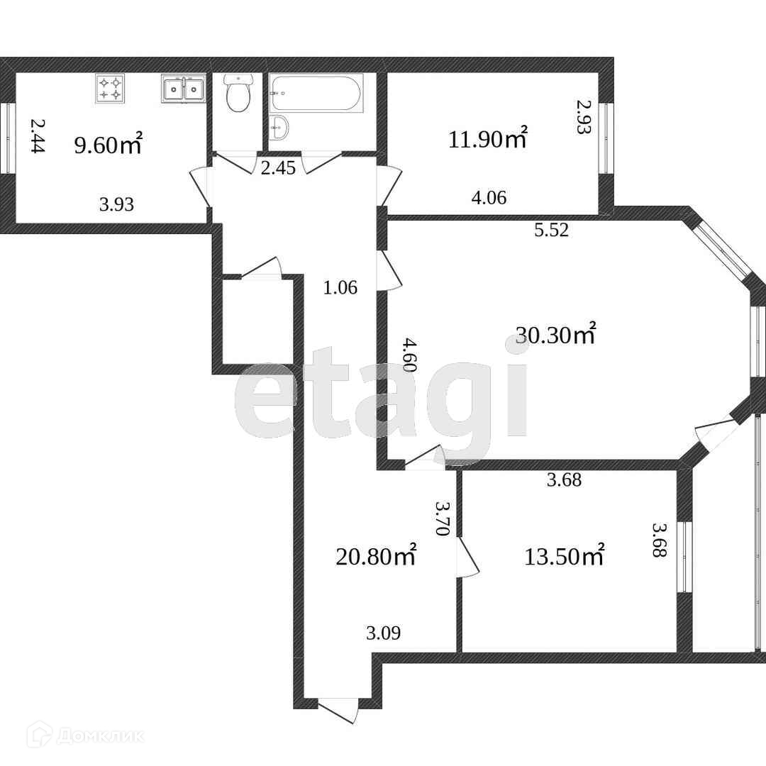 Общая площадь 86.7 м2