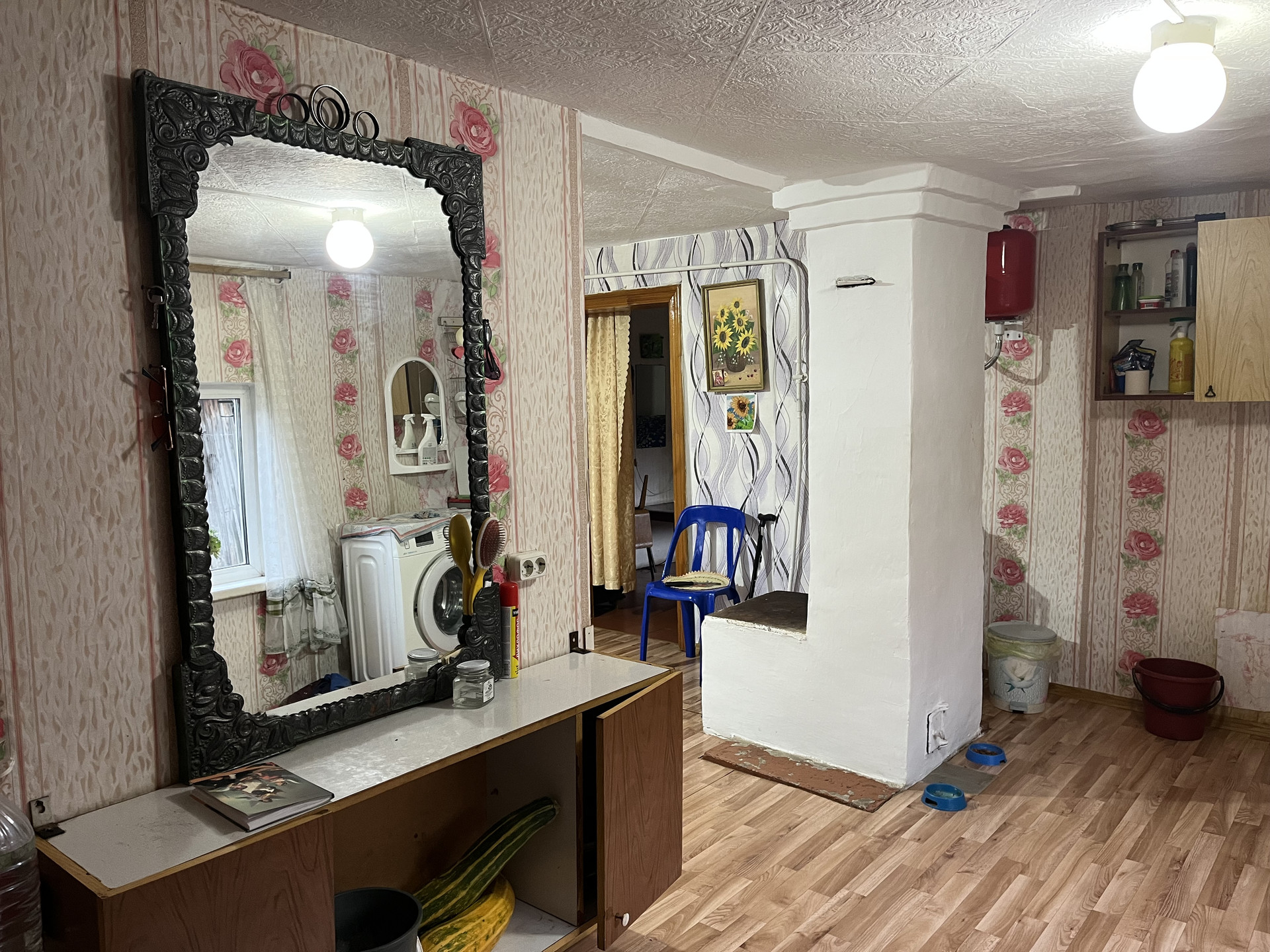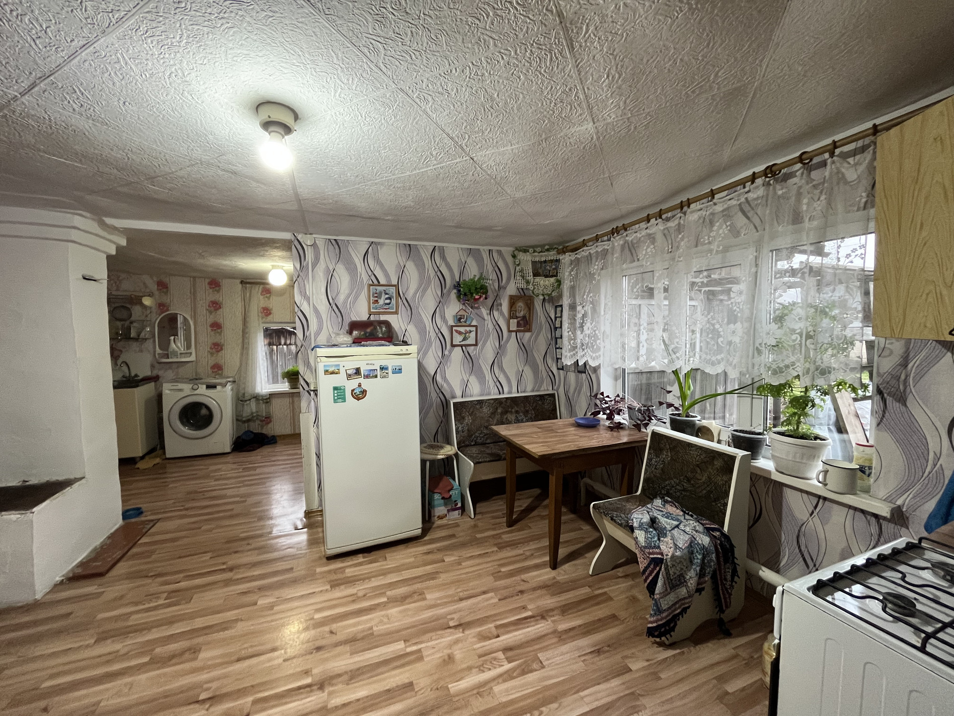 В доме три комнаты, сделан косметический ремонт, имеются все коммуникации: газ, электричество, газовое отопление, канализация. Крыша дома сделана под мансардный этаж, можно сделать дополнительные комнаты. Окна дома пластиковые, санузел на улице, имеется домашний и уличный погреба.