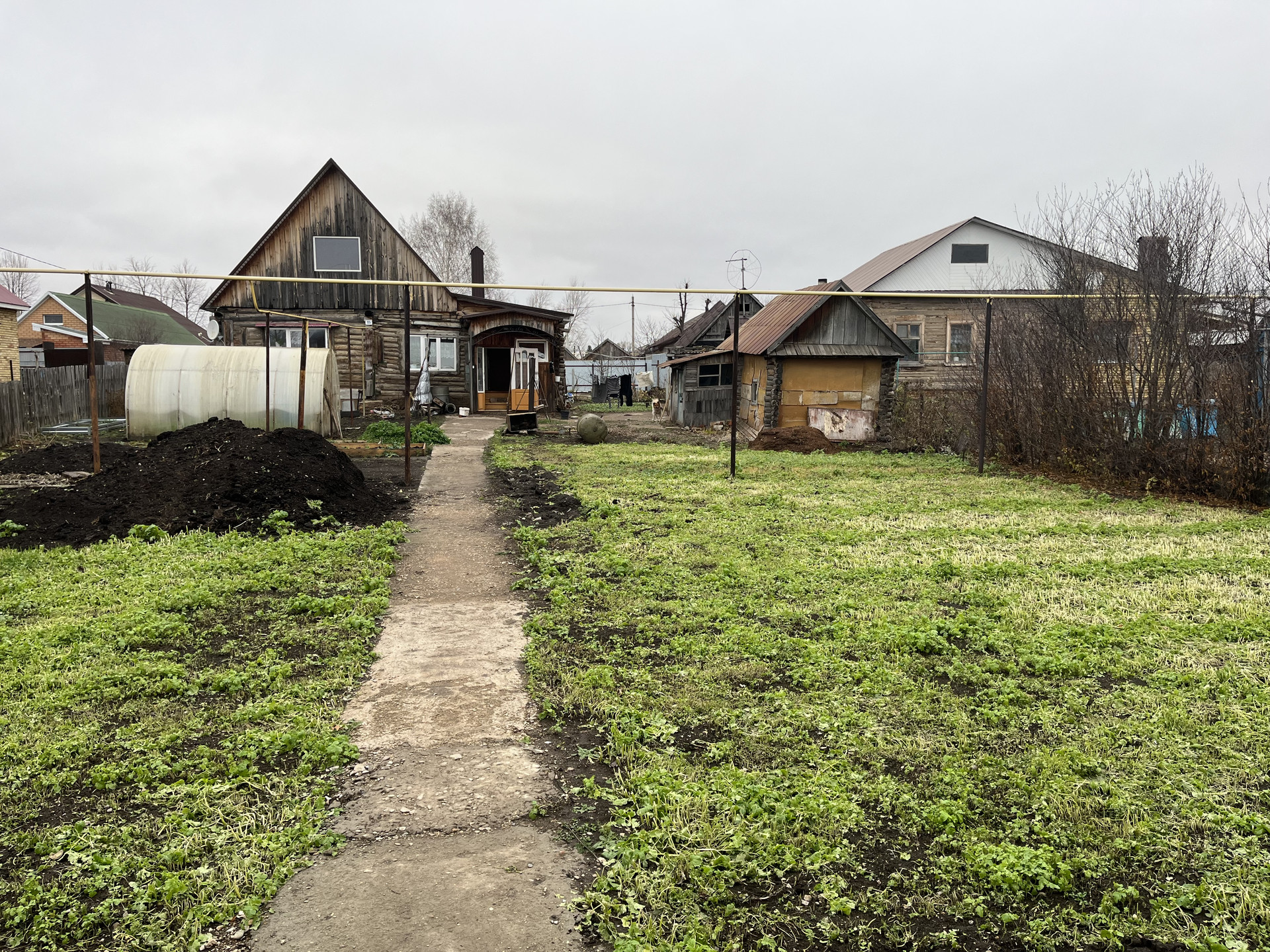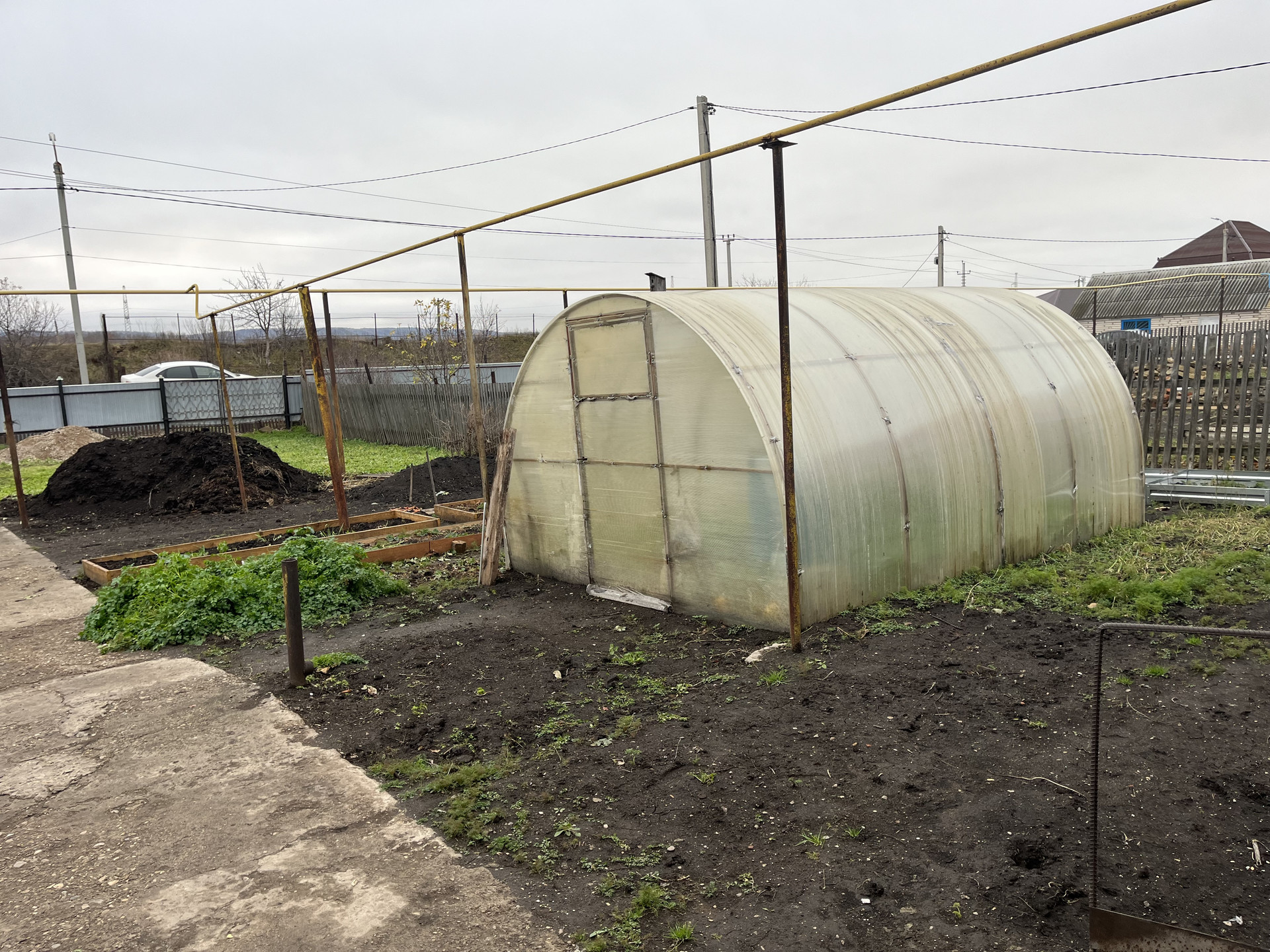 Во дворе дома есть теплица, баня, хоз.постройки.