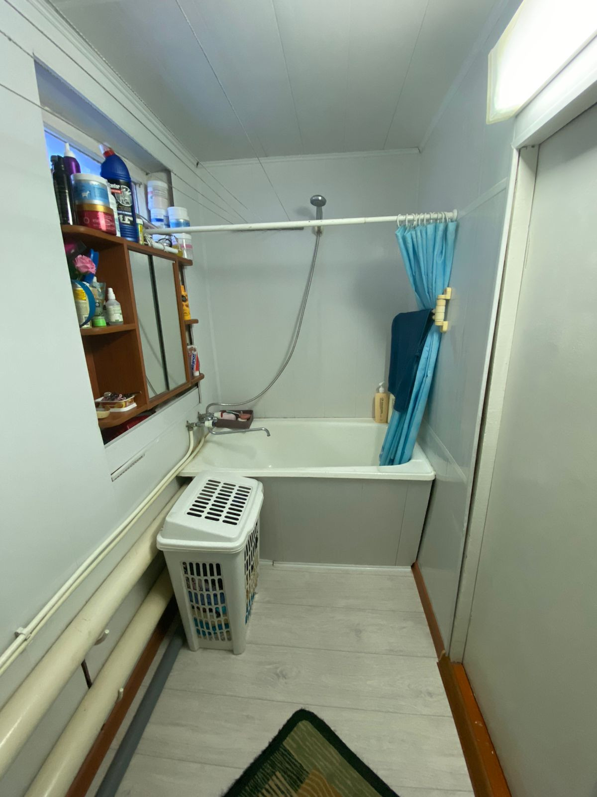 Площадь дома составляет 59,6 М2 В доме три комнаты, совмещенный санузел.