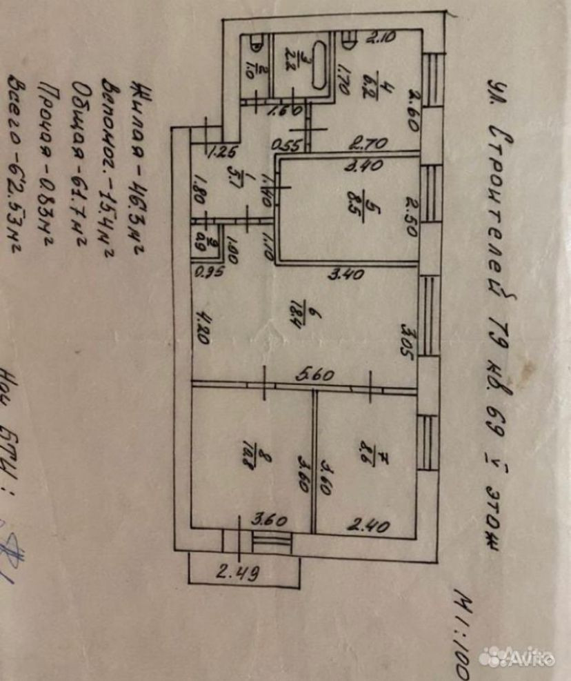 Общая площадь 62 м2