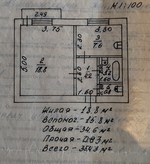 Общая площадь 35.4 м2