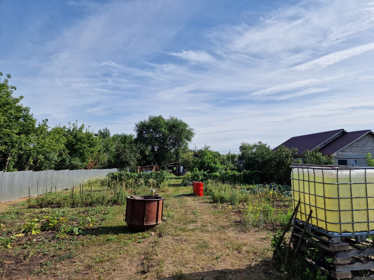 • Новый забор вдоль участка, новый водопровод от колодца заведён на участок, середина участка подготовлена (расчищена) для строительства нового дома, колодец с водой, кирпичный сухой погреб в сарае размерами 2,5*1,5 м, глубиной - 2,3 м, вместительный гараж из оцинкованного профлиста Н-75.