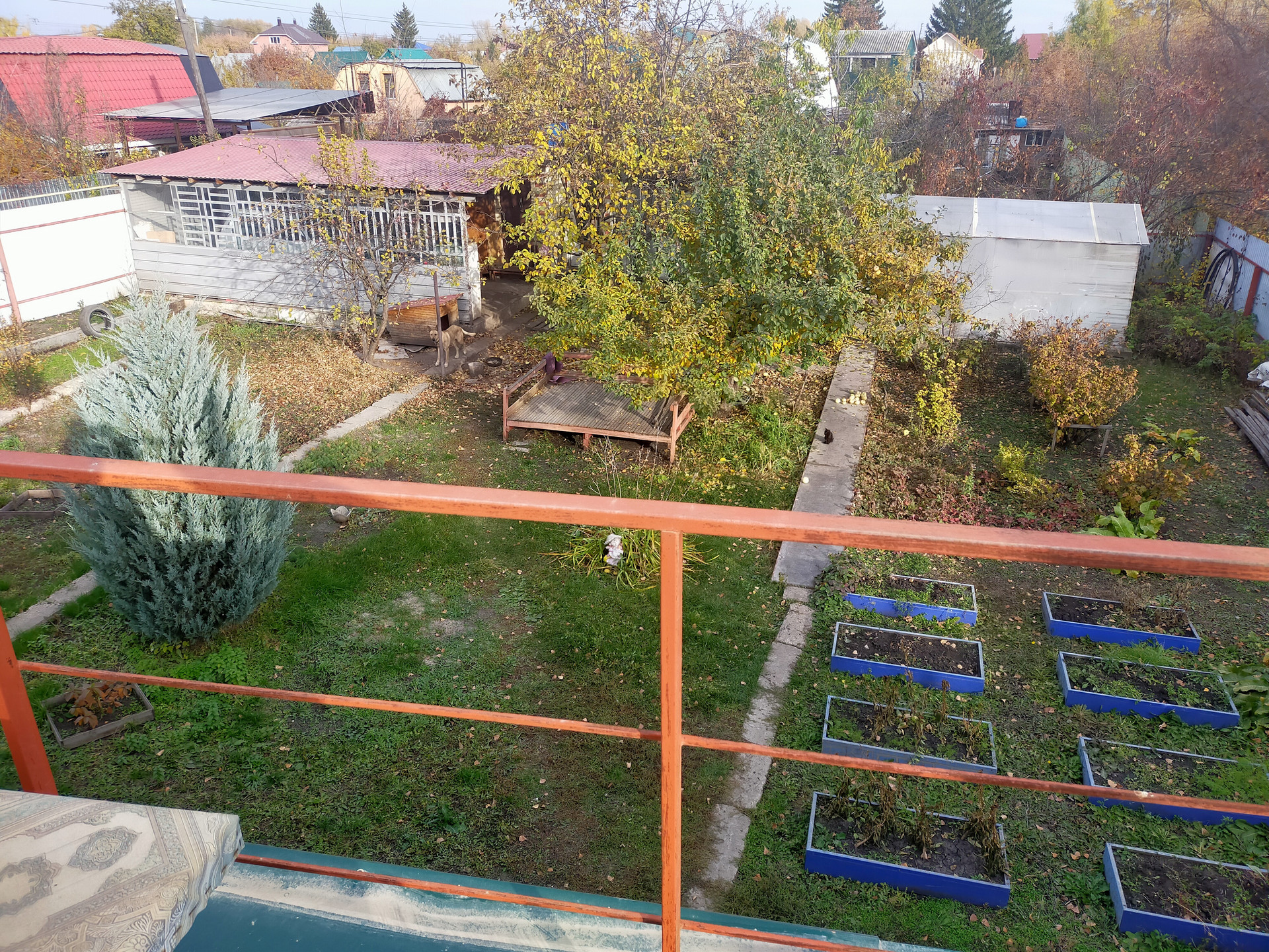 Участок полностью огорожен. На участке 2 больших кирпичных сарая под хранение сaдoвого инвентаря, инструмента и припасов, навес для машины и складирования мелочей 8х4 м с автоматическими воротами, есть теплица 4,5х4 м с бетонными дорожками, летний туалет с унитазом и смывным бачком, курятник с огороженным участком, топчан и переносной мангал, баки и бочки для поливочной воды. Есть отдельный заезд на участок для гостей. Есть турник или можно сделать качели для детей. Остаётся вся мебель, телевизоры и бытовая техника, много строительных материалов и инструмента, кашпо для цветов, садовый инструмент