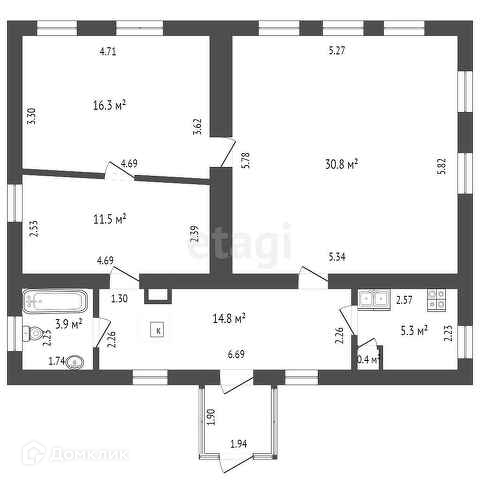 Общая площадь 58.4 м2