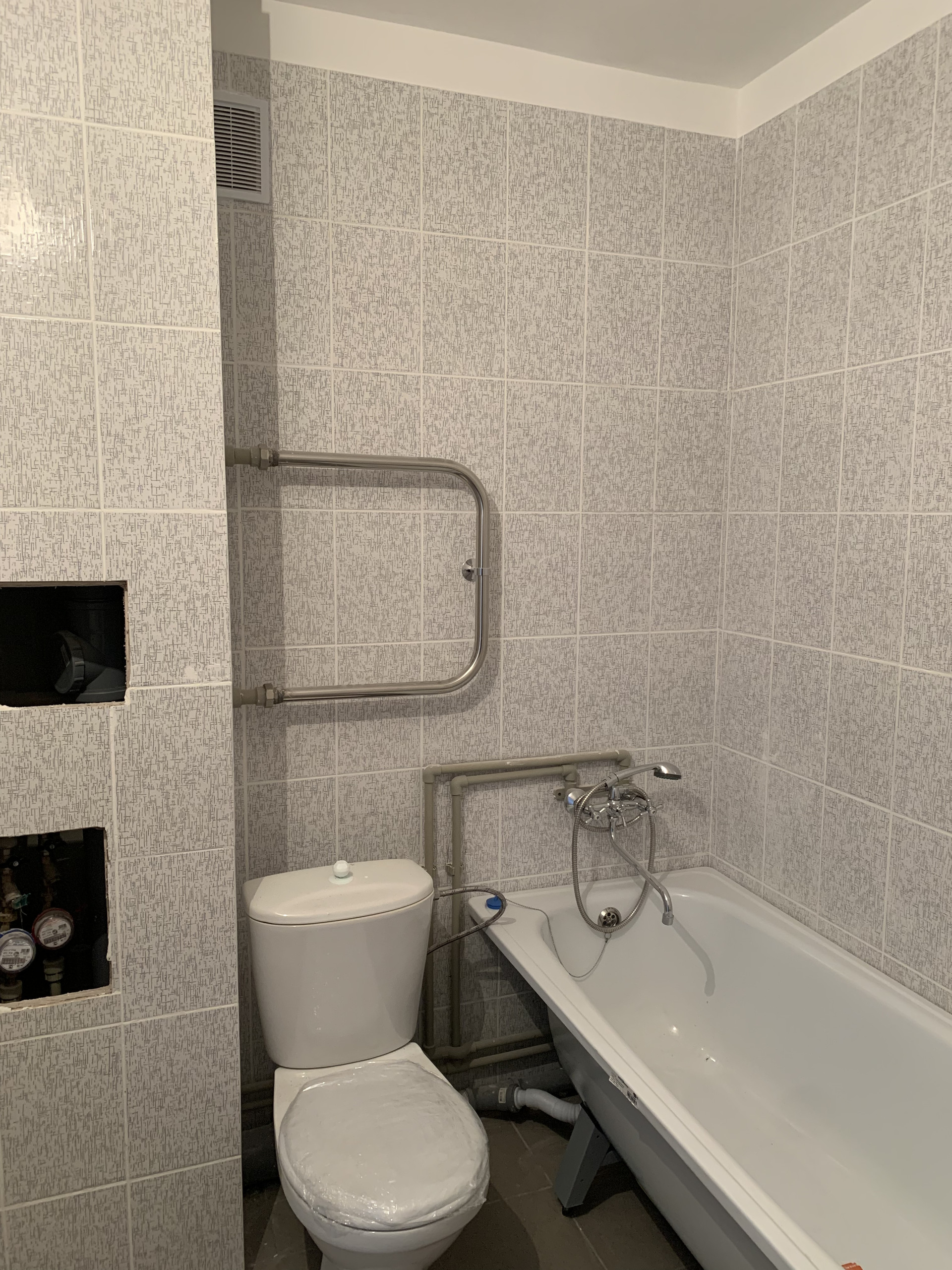 - Новая сантехника. Санузел в плитке. Полноценная ванна. Установлены счетчики на воду. - Электрическая плита.