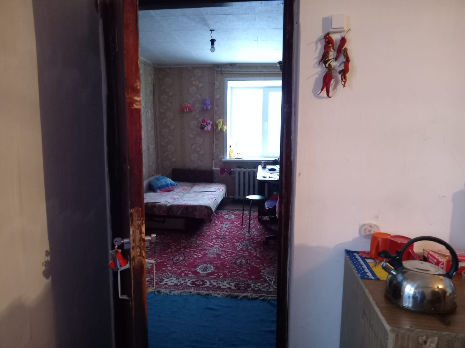 В комнате сделан косметический ремонт, установлено пластиковое окно, простая входная дверь.