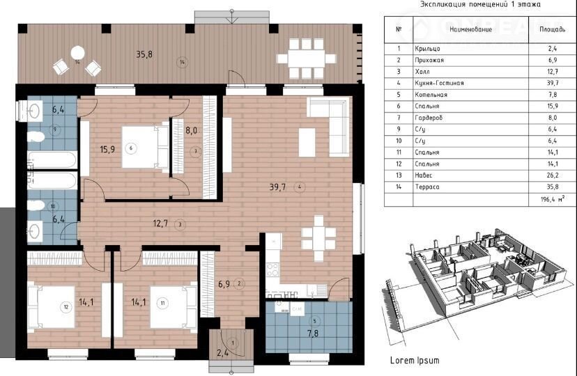 Общая площадь 134 м2