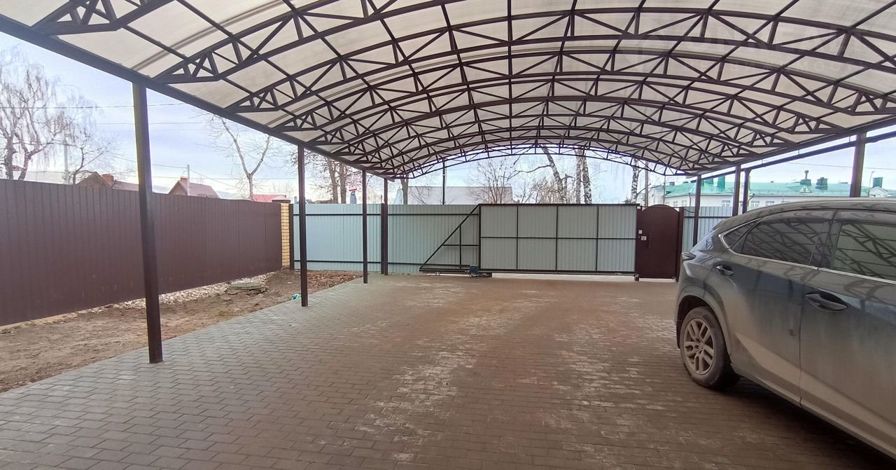 Территория дома облагорожена, установлен капитальный навес для 4 -х автомобилей, выложена брусчатка, автоматические откатные ворота, домофон. По периметру выведены коммуникации для видеонаблюдения. На участке имеется теплица и парник. Выведены и подключены краны и шланги для полива растений и мойки автомобиля.