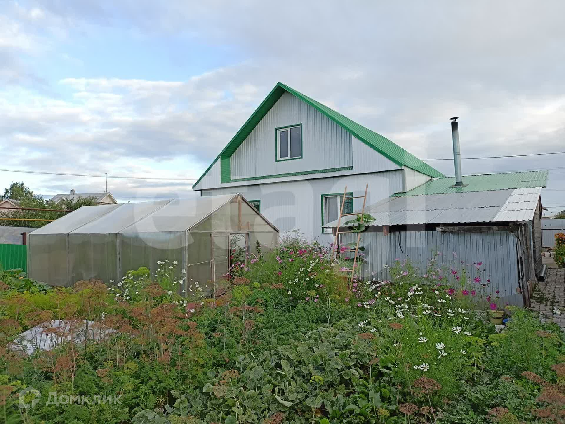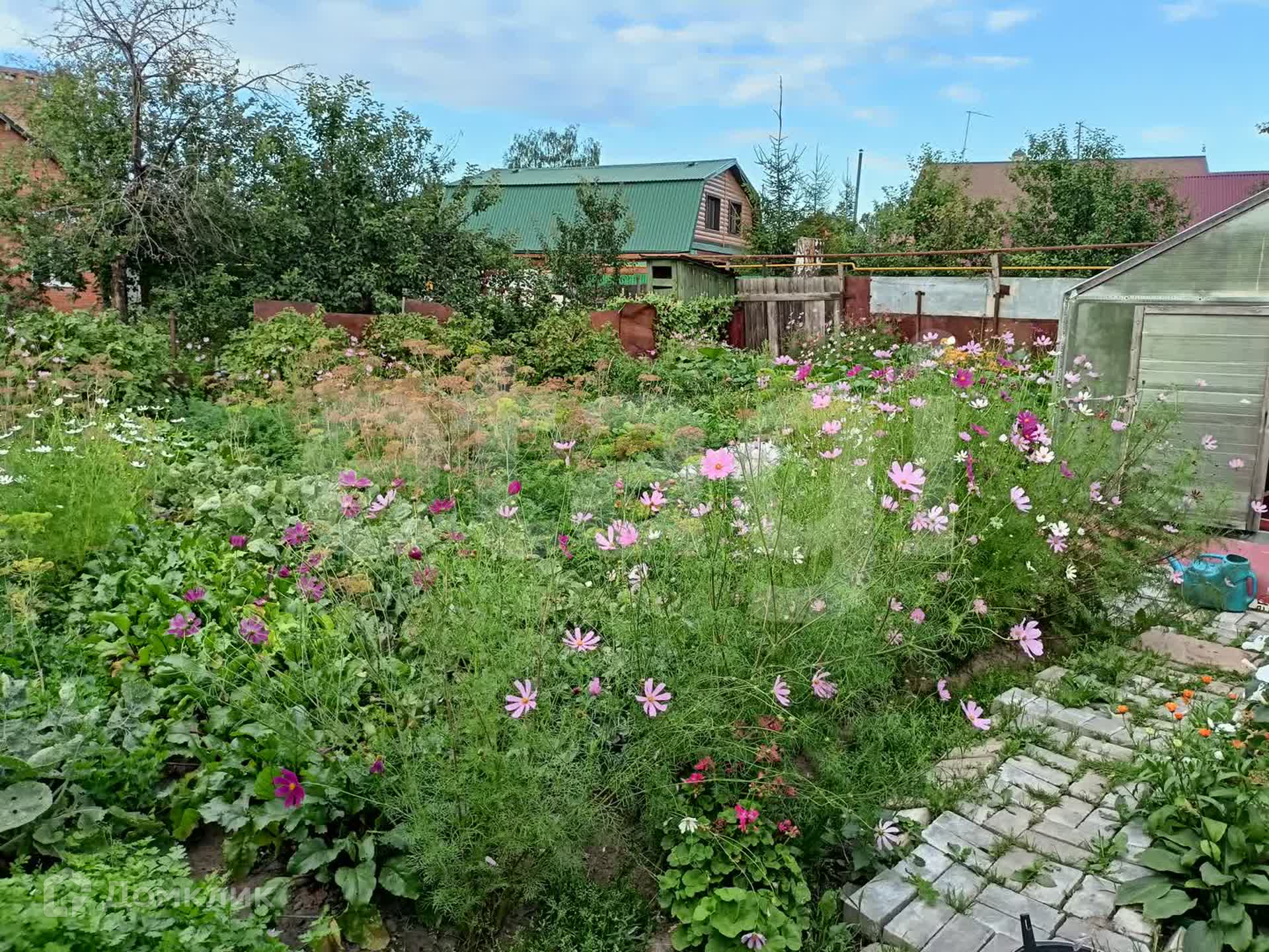 Благоустроенный участок с ухоженным и засаженным огородом (сортовая смородина, крыжовник, калина, малина, многолетние цветы) и большой теплицей.
