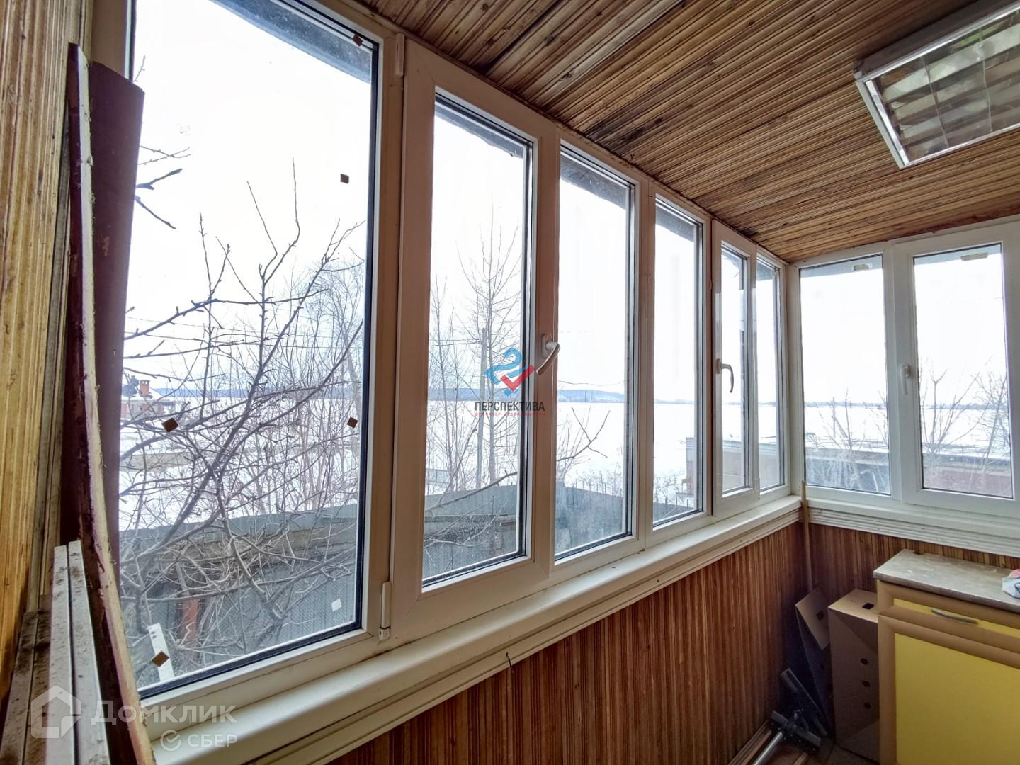 — балкон обшит вагонкой, застеклен,