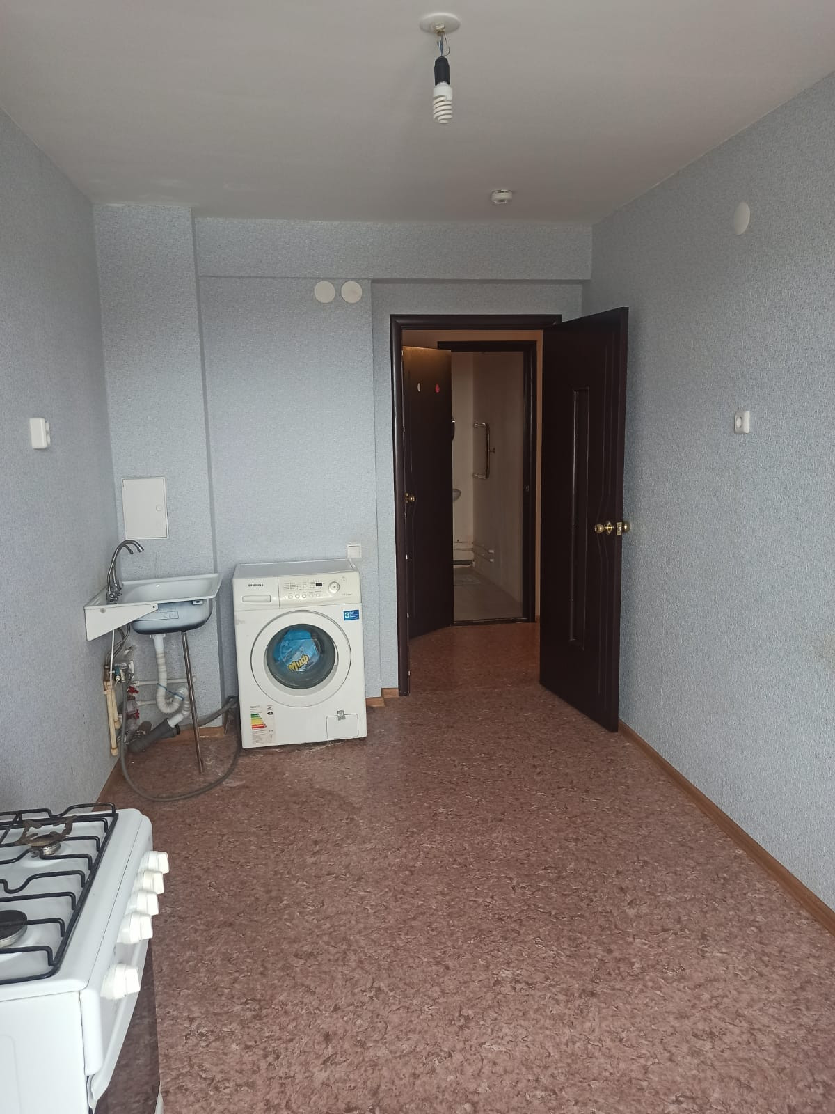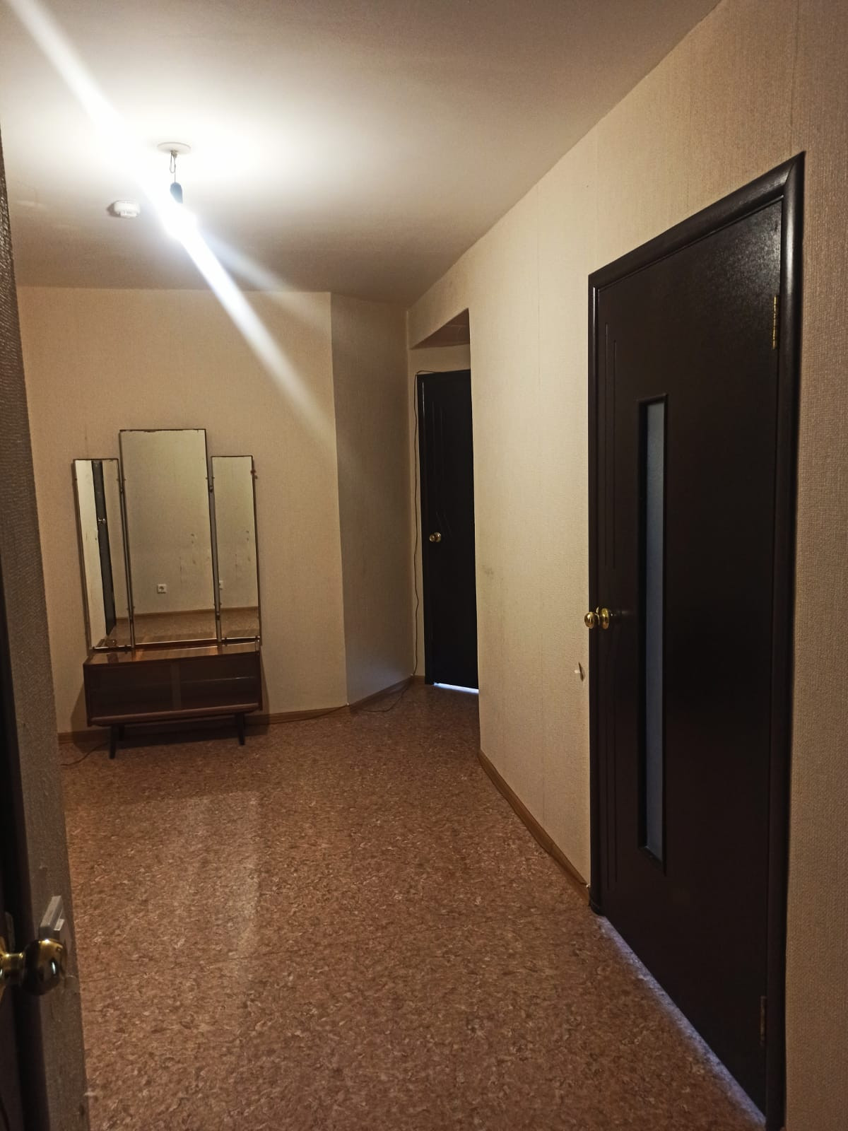 На полу линолеум, ровные потолки и стены, новая сантехника. В квартире установлены счётчики: на воду - в кухне и в с/у., в прихожей - электрический, в кухне - газовый.