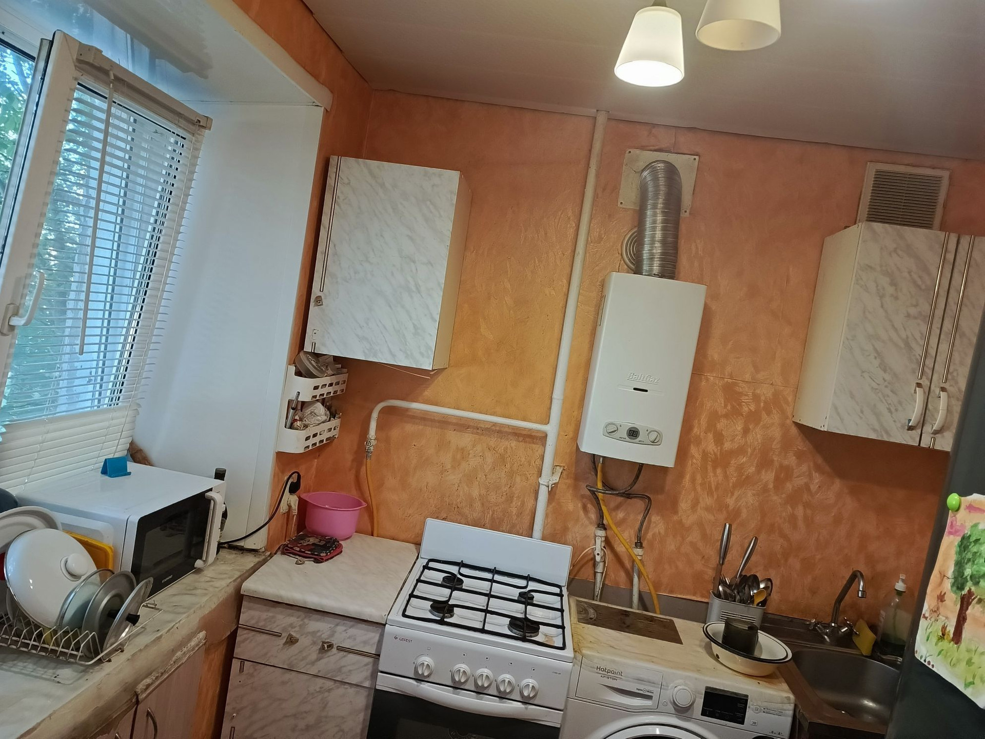 Газовая колонка автомат- это значит ,что горячая вода есть всегда.Никаких отключений на летний период терпеть не придется.Окна везде ПВХ.
