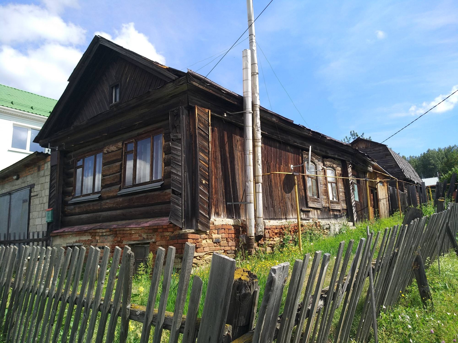 Продается Дом на земельном участке. Цокольный этаж из кирпича. Верхняя часть дома из бревна со служебными постройками гараж, баня, сарай, беседка, крытый двор.В доме электричество, газ, скважина. На земельном участке имеются посадки из плодовых деревьев.