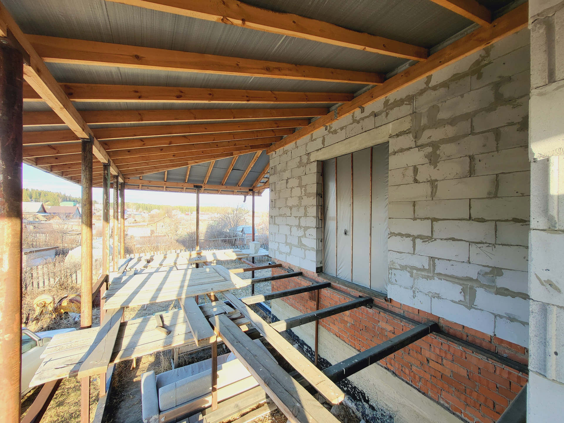 Высота потолка 3 м. Стропильная часть на 200 мм с утеплителем.