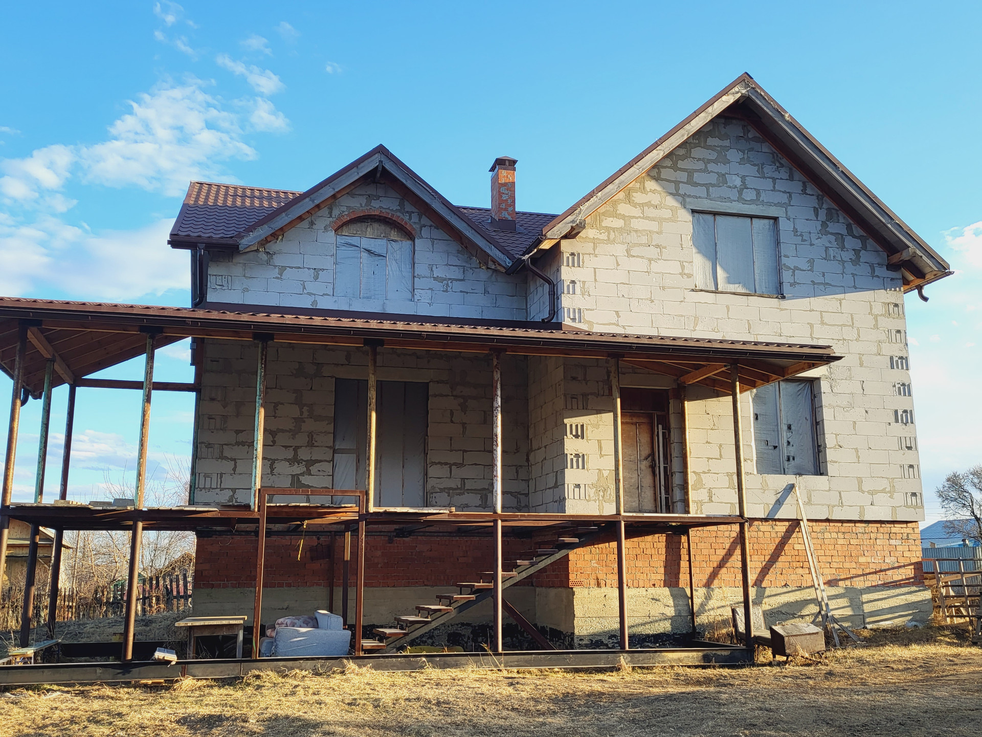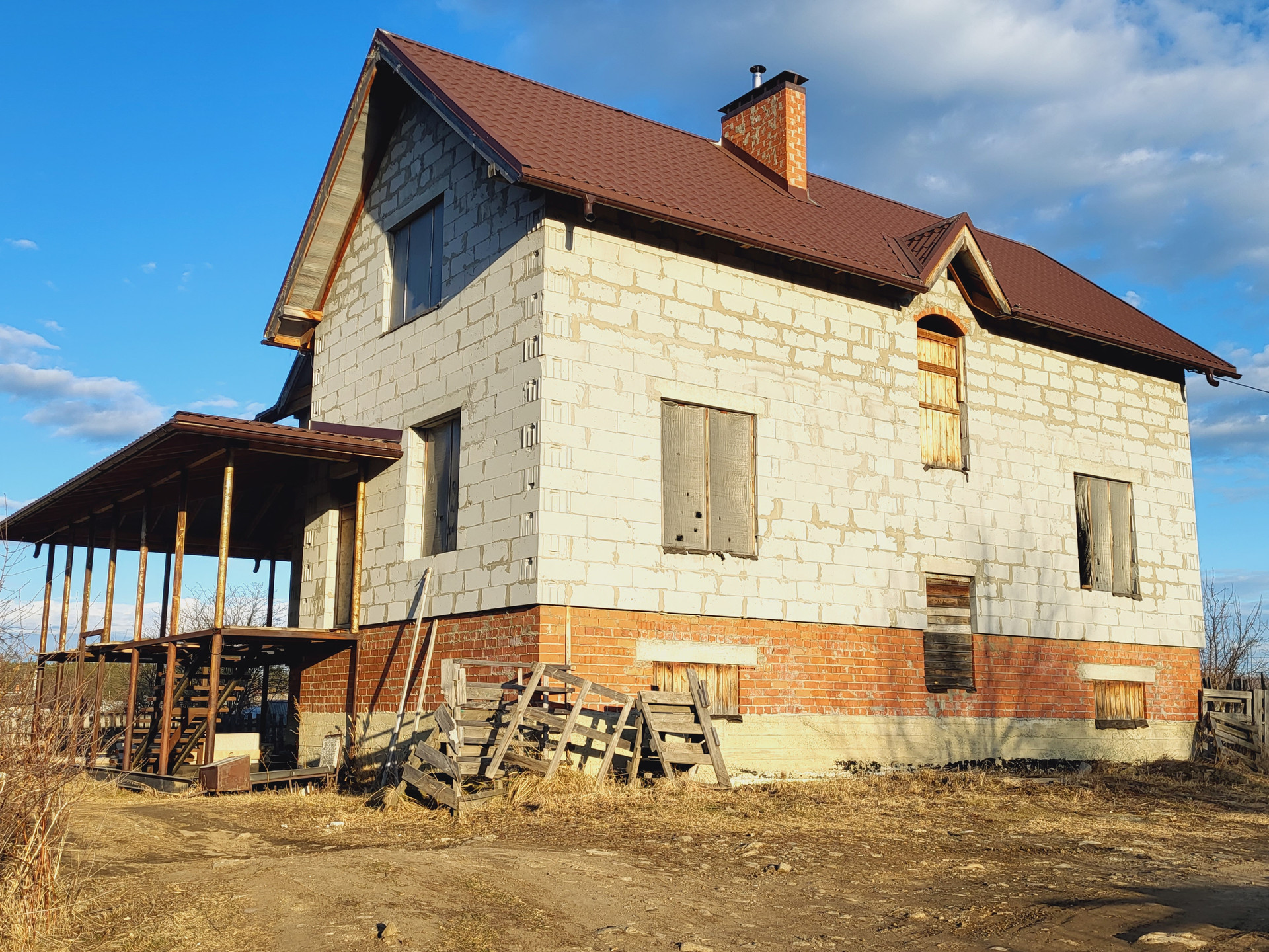 А построен уже коттедж из пяти комнат 320 кв.м. Степень готовности 70%!