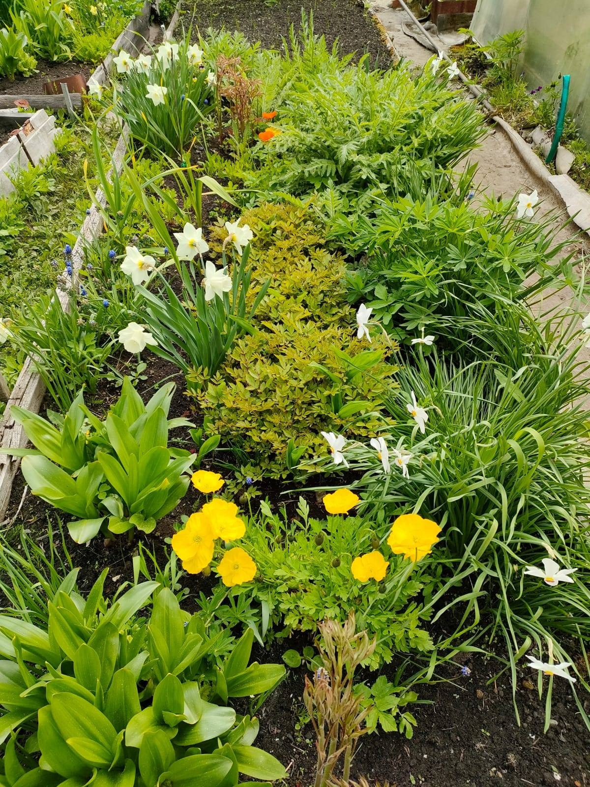 Земельный участок 15 соток.  Посажены различные многолетние цветы,  пионы, ирисы, хризантемы.