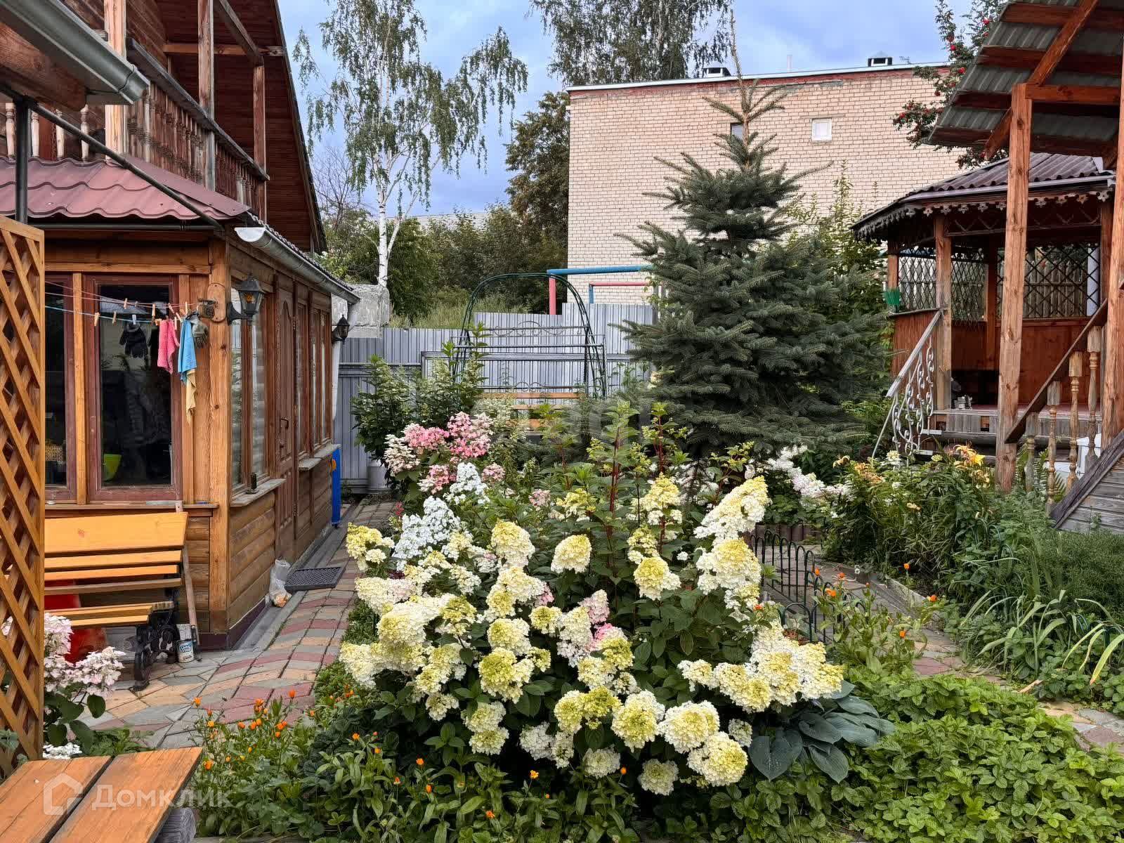 Имеется беседка, а также большая летняя веранда. Рядом есть свободное место для организации мангальной зоны.