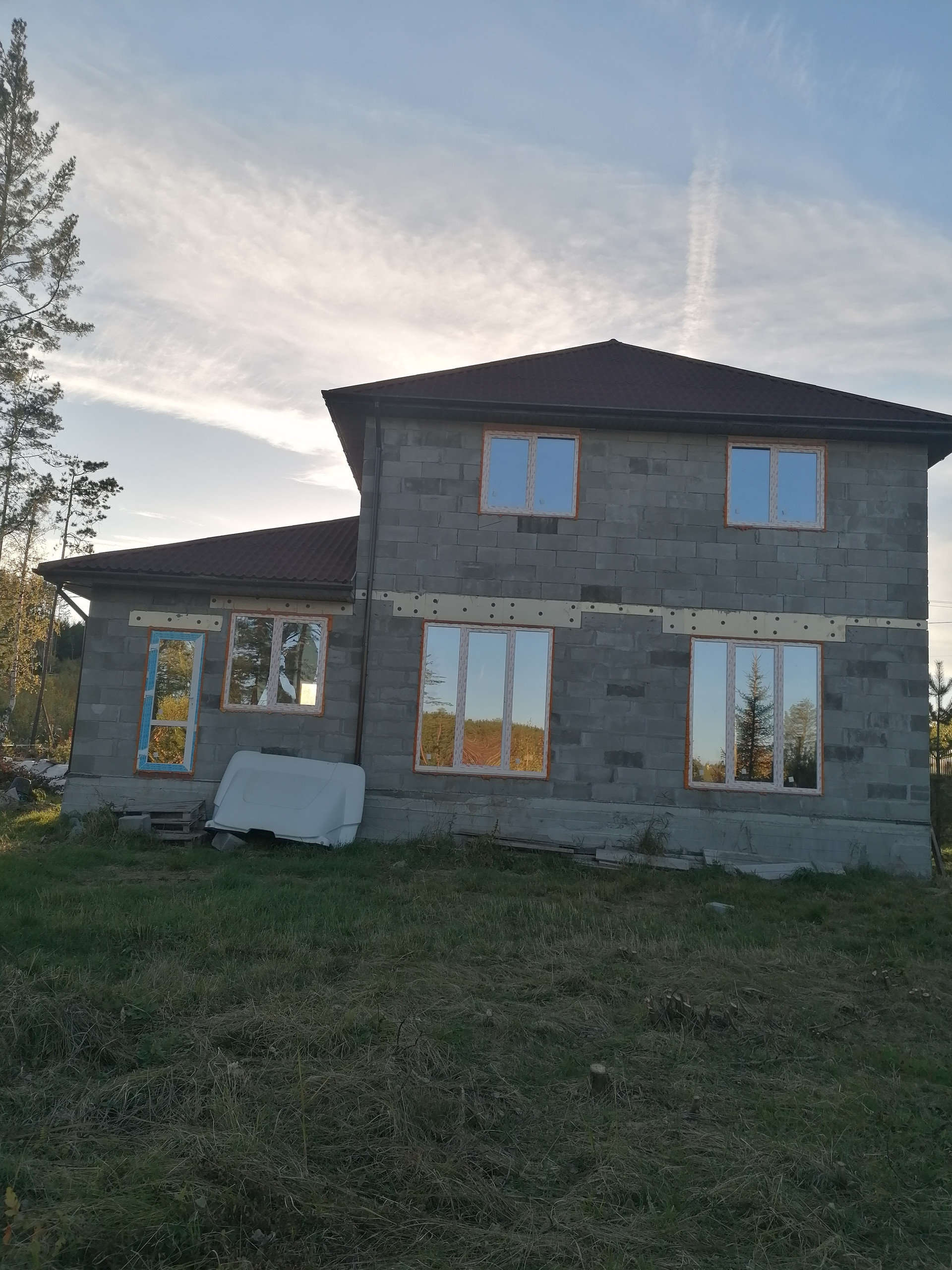 В свободной продаже двухэтажный коттедж 11,25х11,25. Несущие стены из газоблока, мягкая кровля из ондулина, сделана подшива по всему периметру кровли и установлены водосточные трубы. На участке ИЖС 15 соток пробурена скважина в 2023 году. Перекрытие 2 этажа утеплено минеральной ватой, толщиной 200 мм. Оставляем строительные материалы: менеральную вату, газоблок для внутренних перегородок, пиломатериал и вагончик. Участок расположен в спальном районе, парковочных мест на три машины. Коттедж и земельный участок в собственности. Газ будут тянуть в следующем году, заявление на газификацию коттеджа подано.