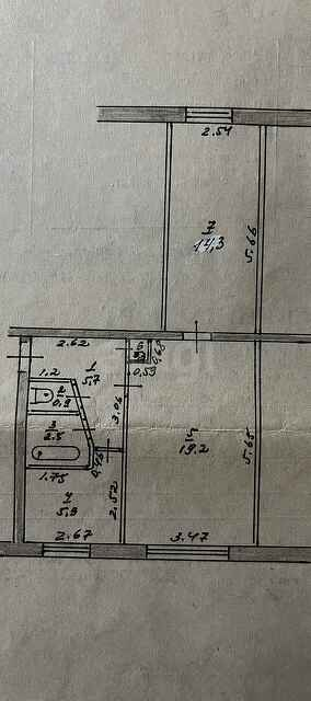 Удачная планировка, большие комнаты на разные стороны (19,2 и 14,3 кв.м), расположение позволяет легко переоборудовать в изолированные и гардеробную