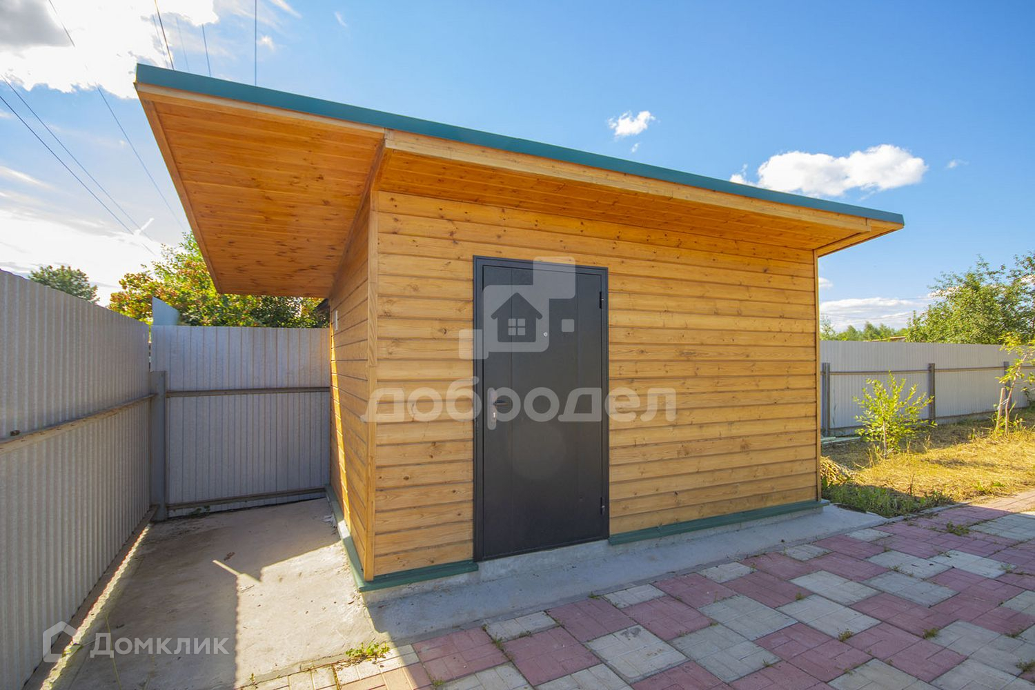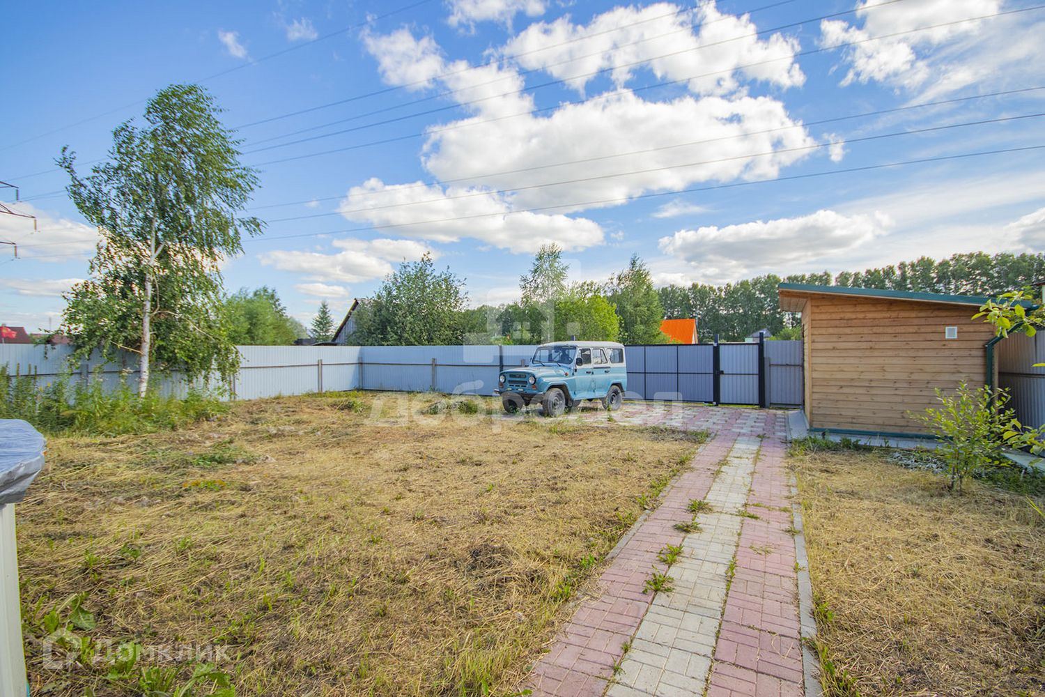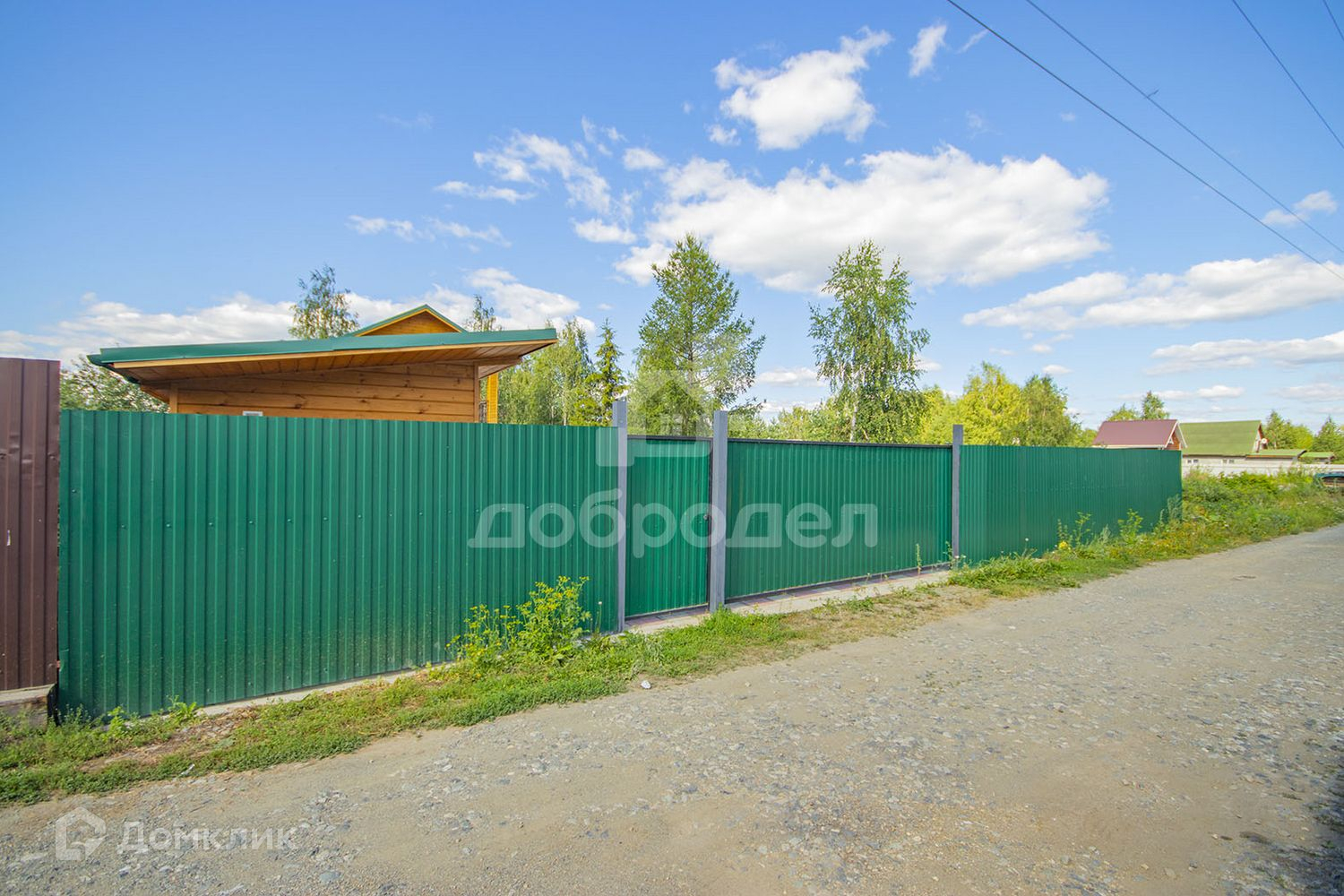 Участок огорожен забором из профлиста, ворота автоматические. На участке построено подсобное помещение. Посажены плодовые деревья (вишня, яблоня, груша).