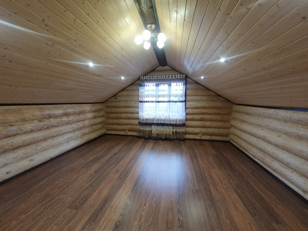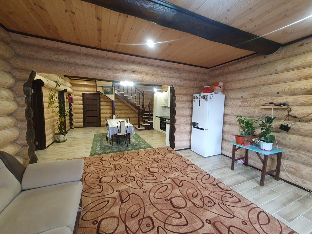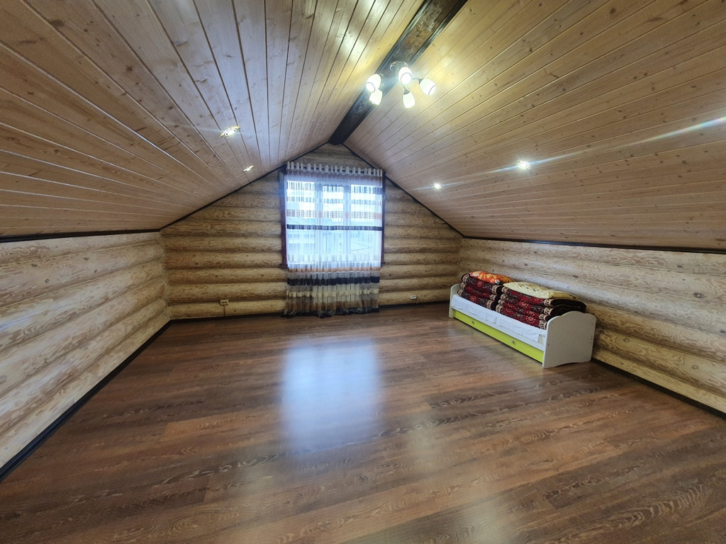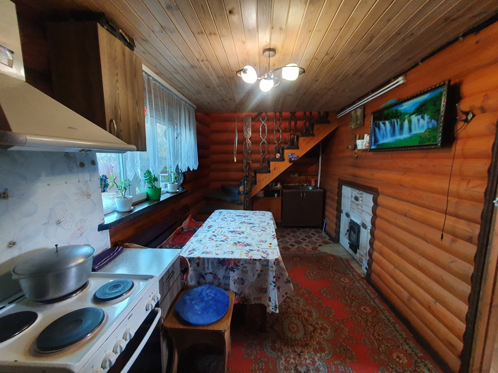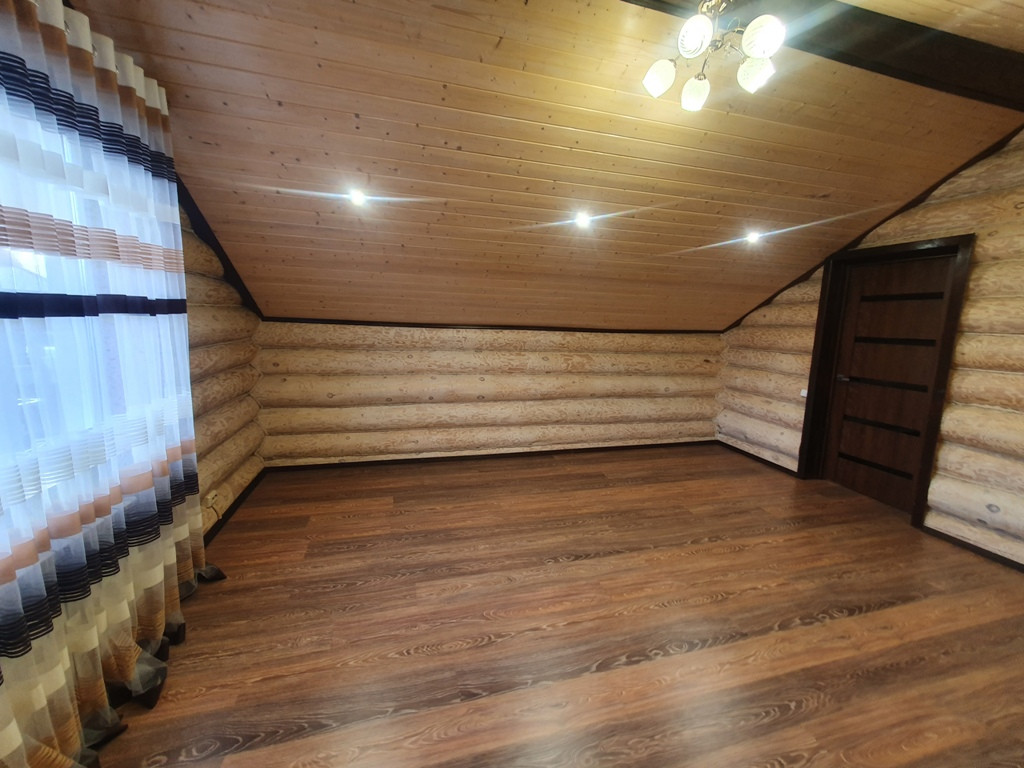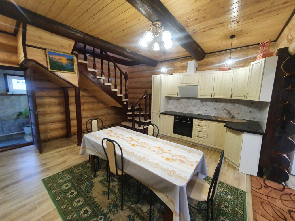 Дом - баня 90 кв.м. из бревен на 1 этаже кухня - гостиная + парилка+ промывочная, на втором этаже спальня + большой балкон.