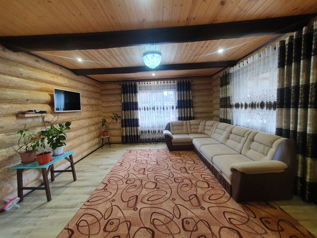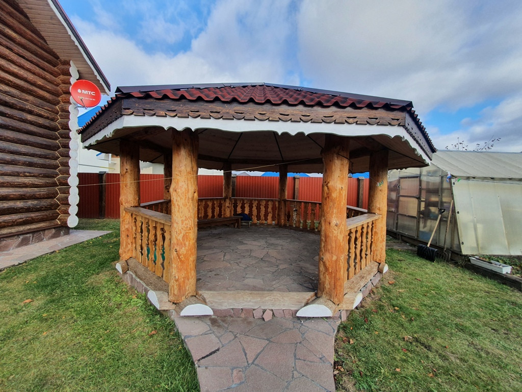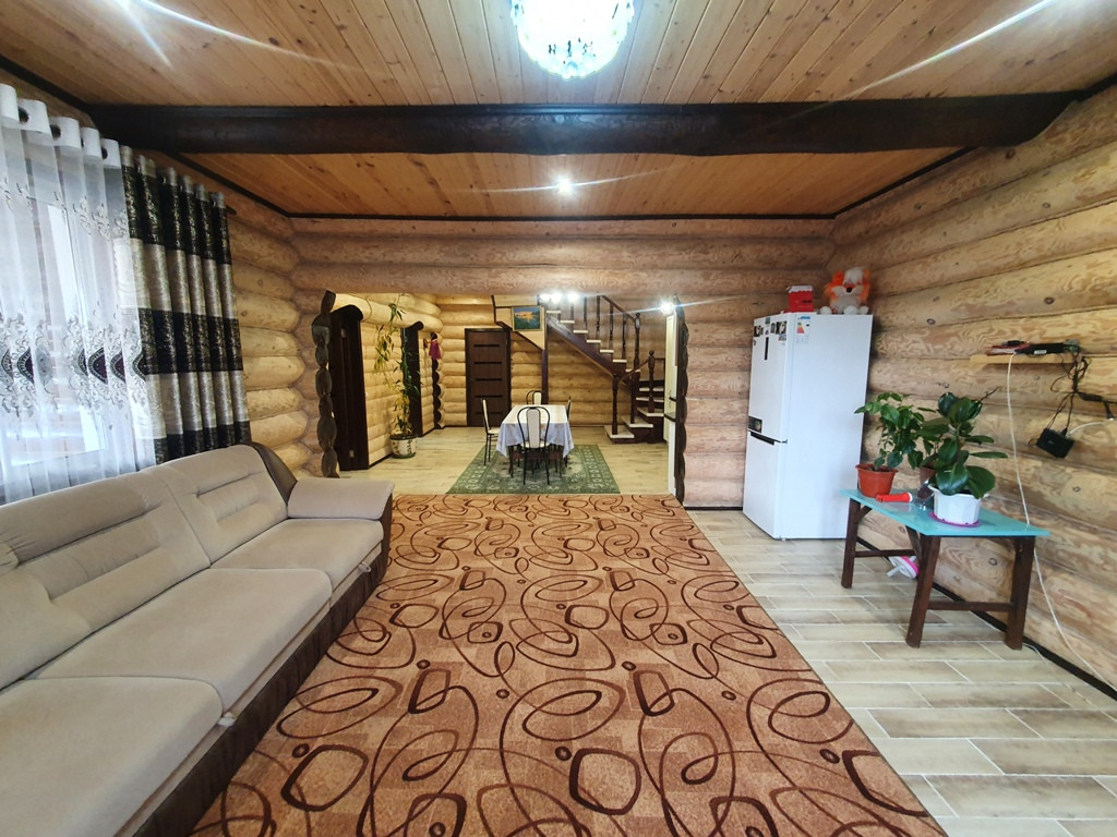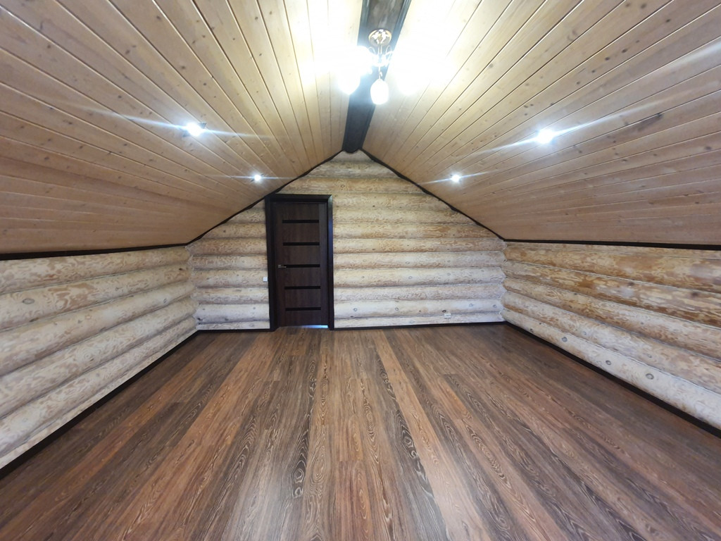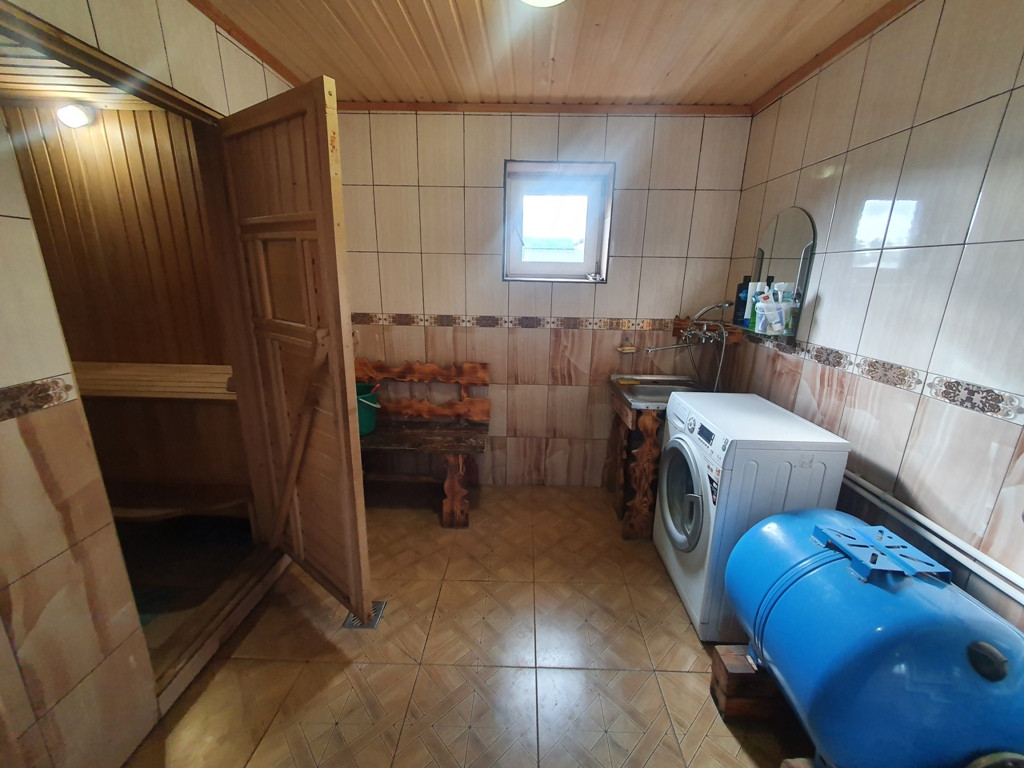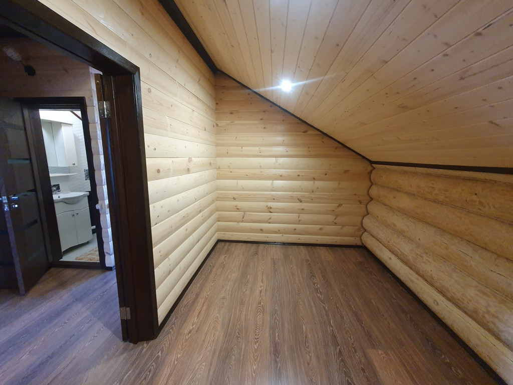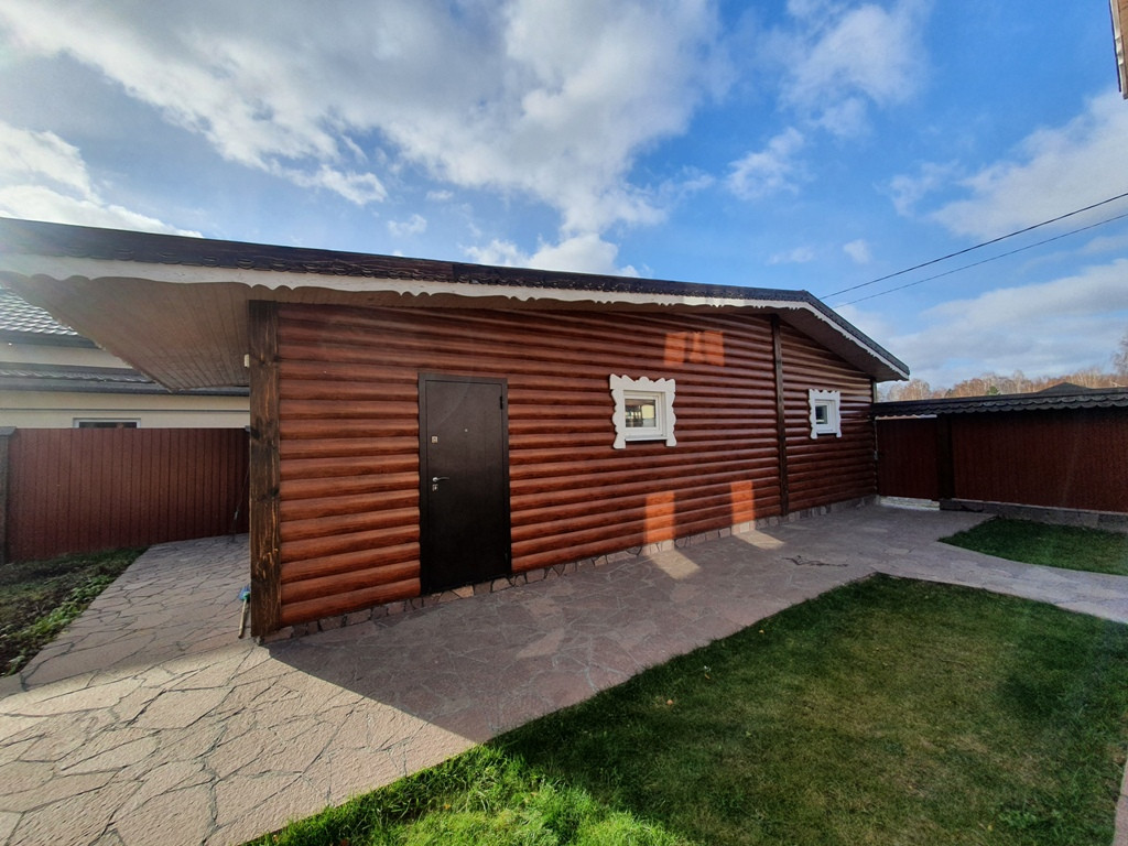 Дом - баня 90 кв.м. из бревен на 1 этаже кухня - гостиная + парилка+ промывочная, на втором этаже спальня + большой балкон.
