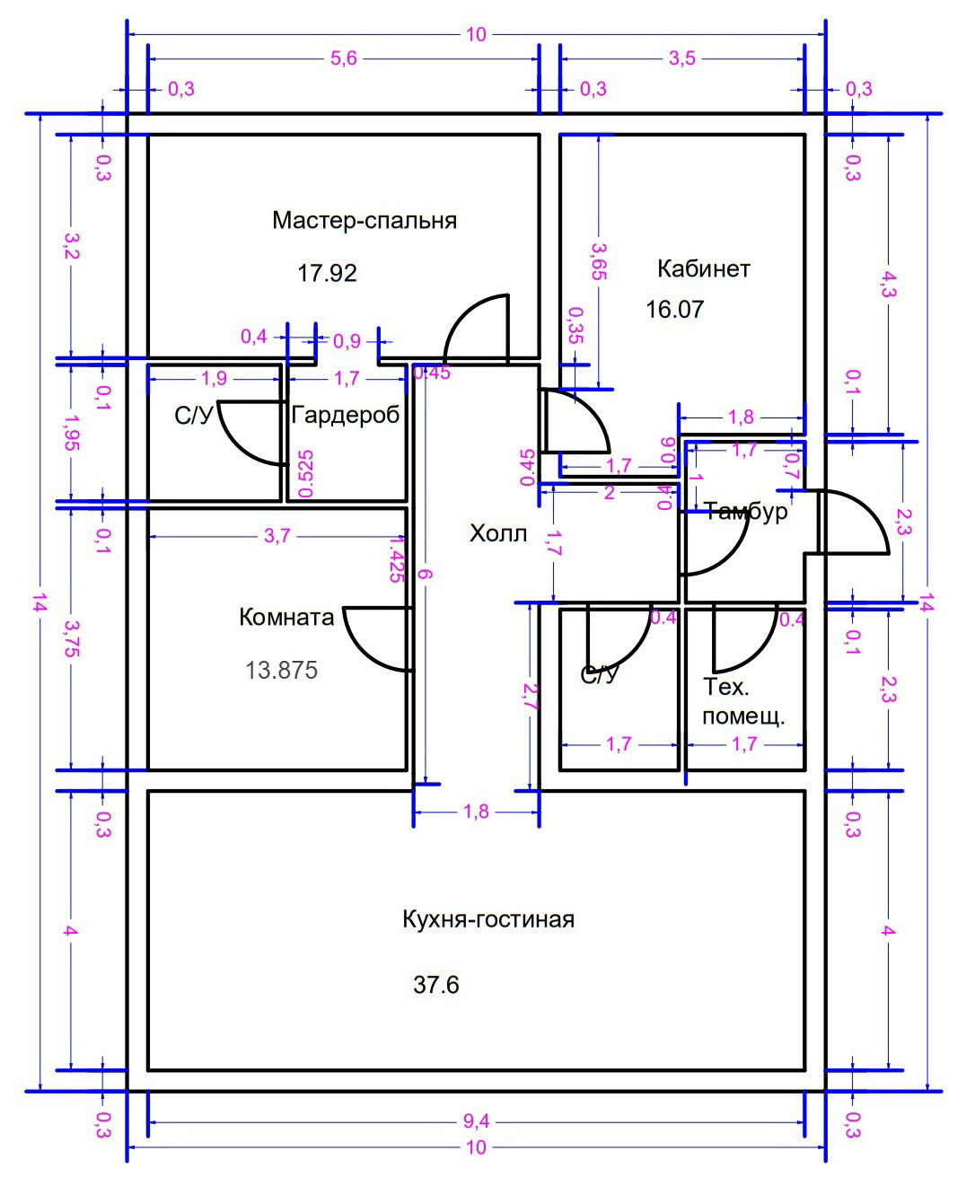 Фундамент монолитная плитой 140 кв.м.,