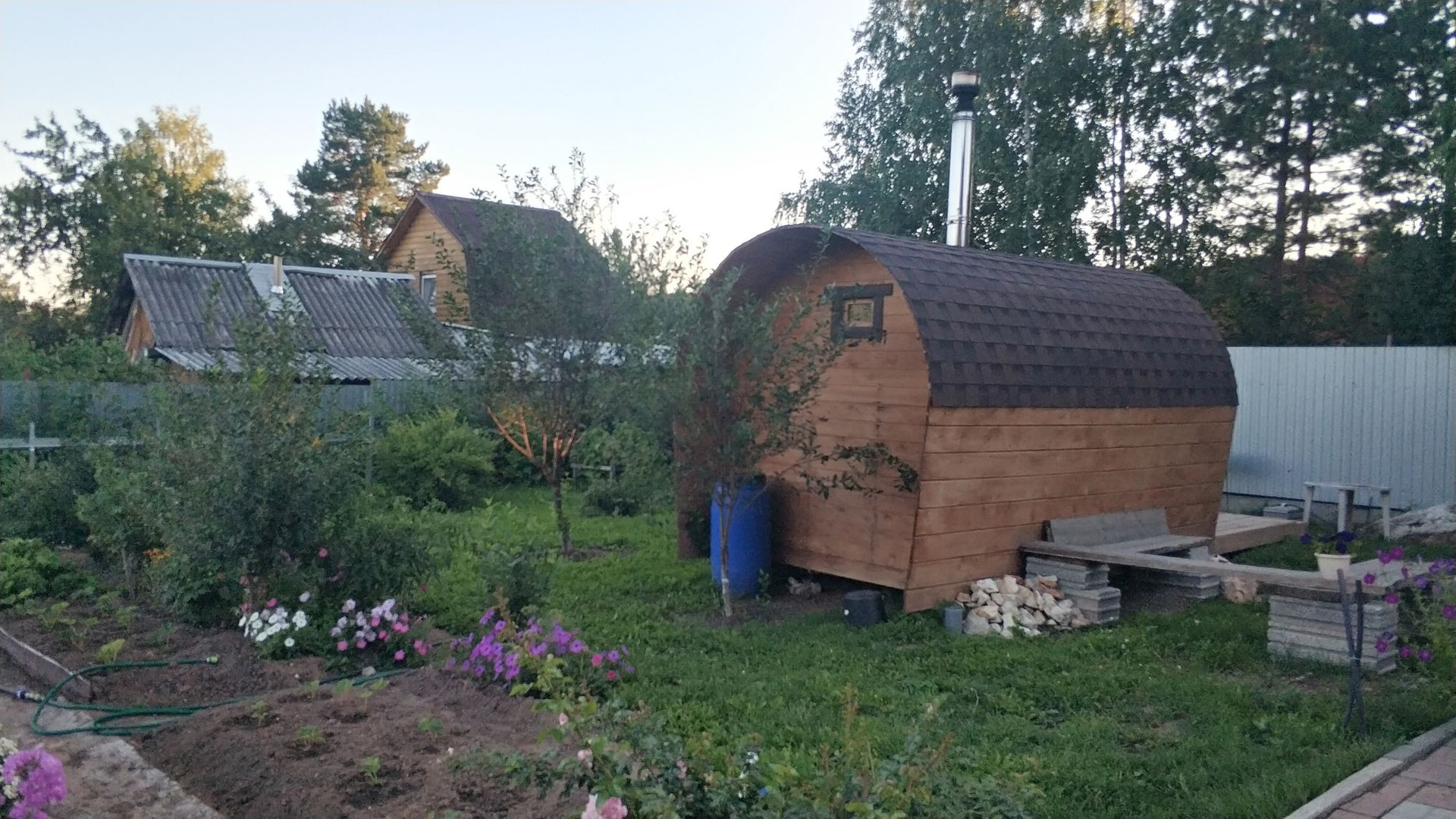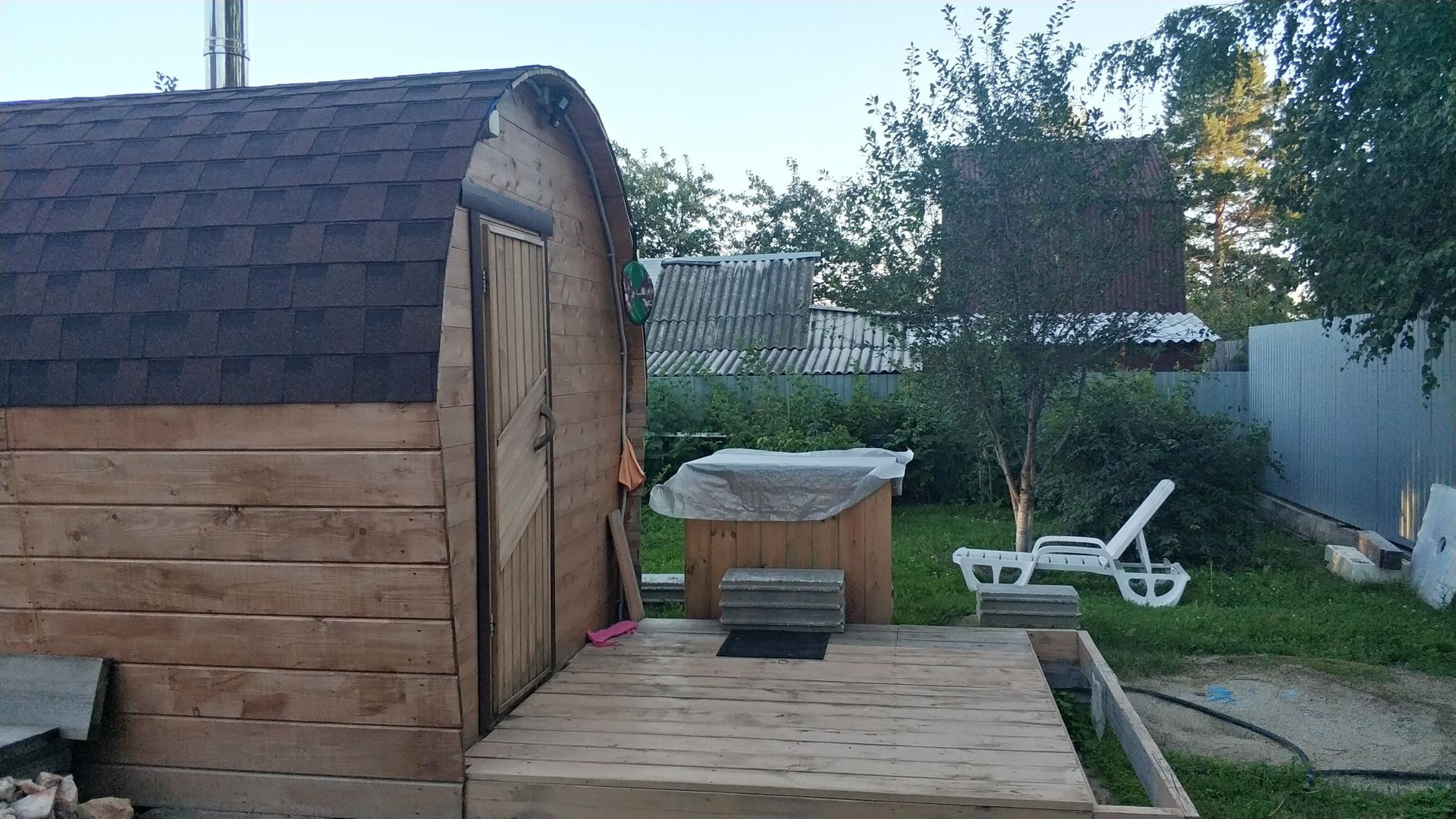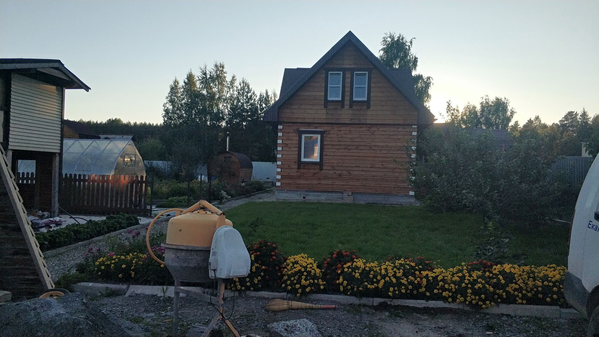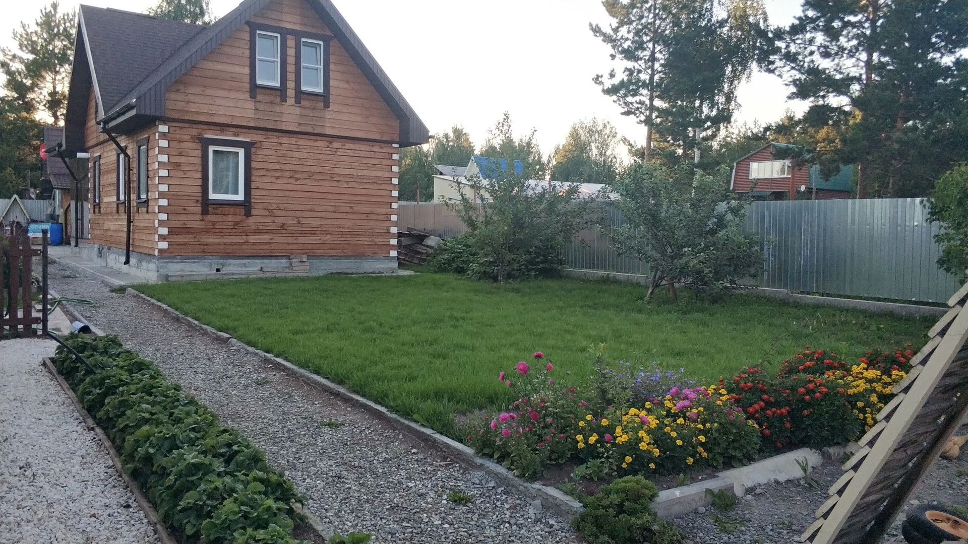 скважина (вода в доме),септик,баня отдельно стоящая, небольшой дом из блоков 3х6две комнаты одна для проживания гостей вторая хоз блок.В доме три комнаты на втором этаже+большой холл. Первый этаж: кухня отдельно,+ большая комната,туалет,душ,овощная яма.Веранда.В огороде все насаждения газоны  детская площадка+теплица.Забор по периметру.Оставлем кухонный гарнитур.