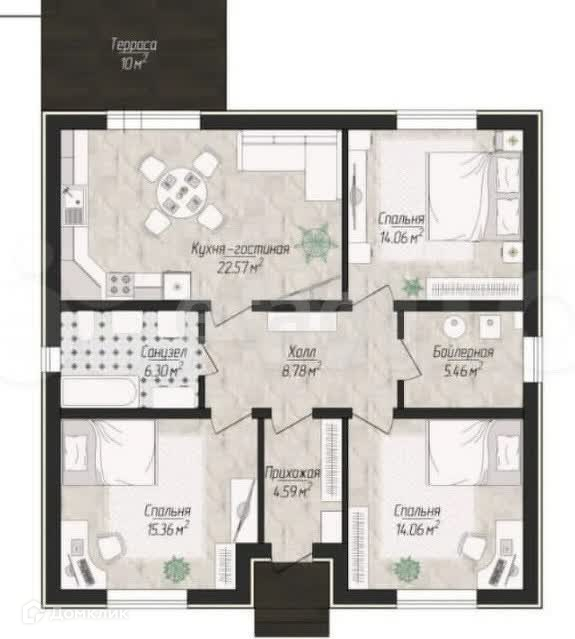 Общая площадь 113 м2